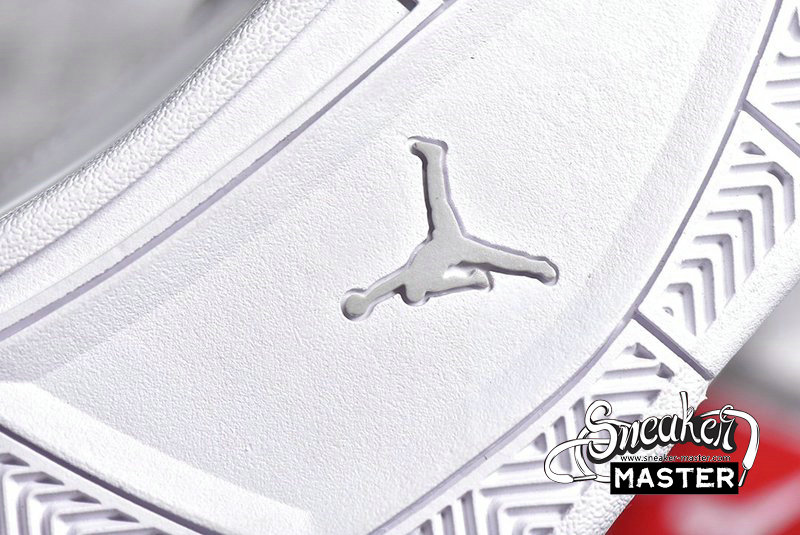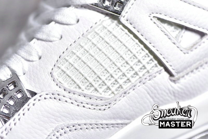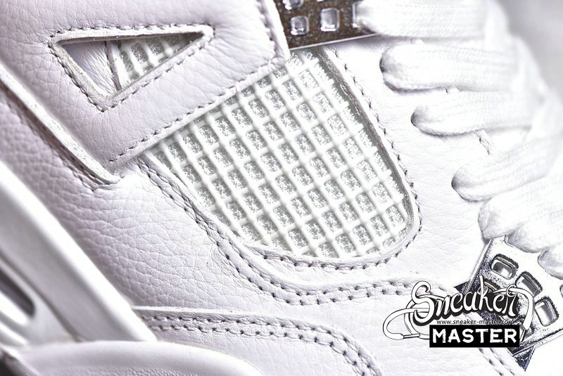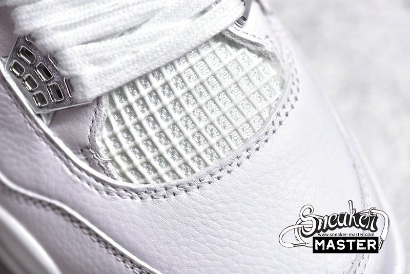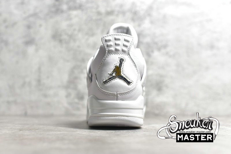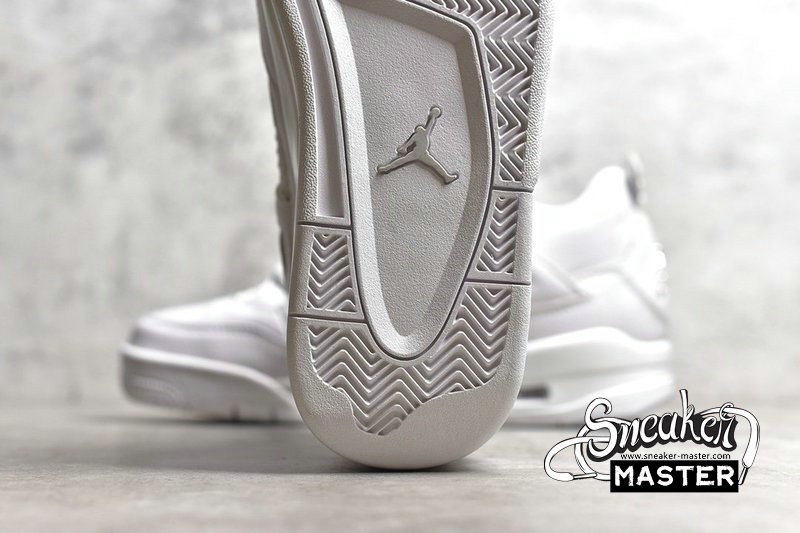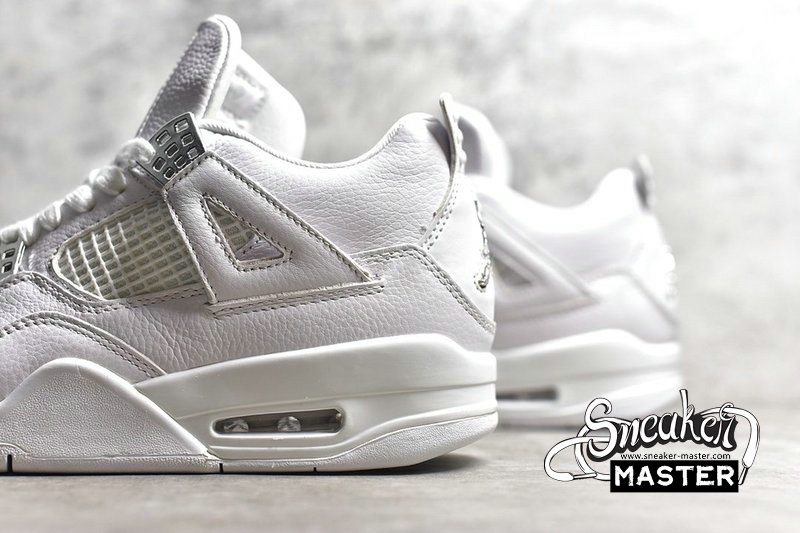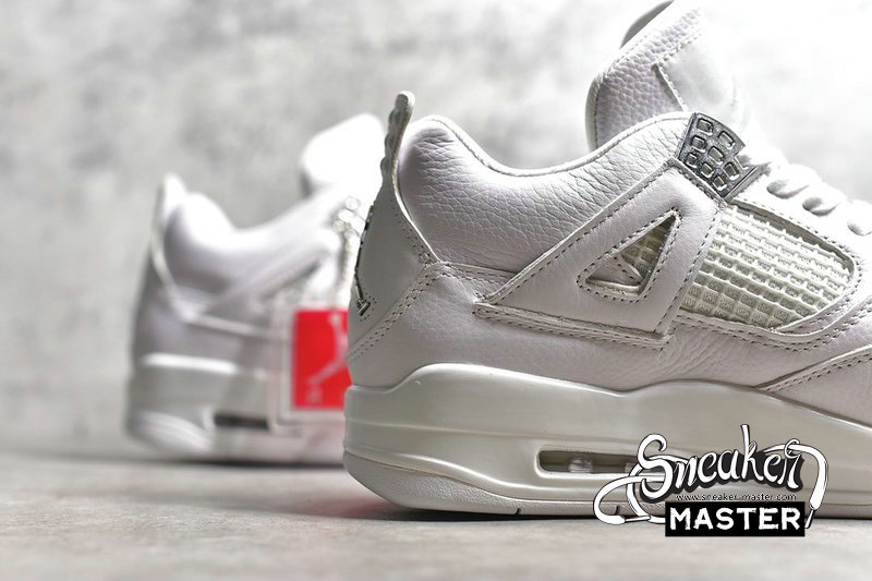 - The Air Jordan 4 Retro 'Pure Money' 2017 features its signature subdued colorway, with a white leather upper accented by metallic silver eyelets and heel Jumpman branding. 'Pure $' appears inside the heel tab, while visible Air in the heel provides cushioning.