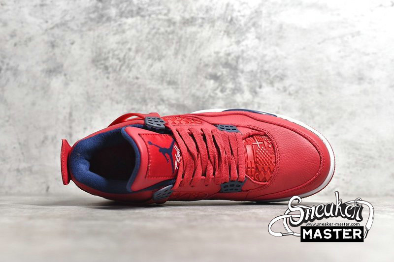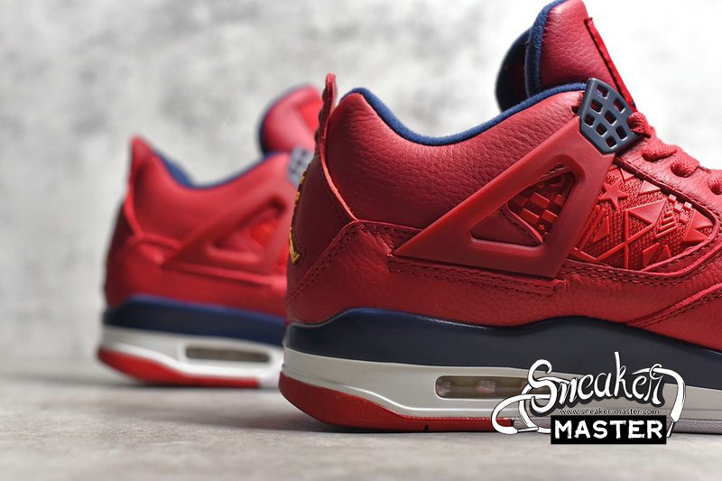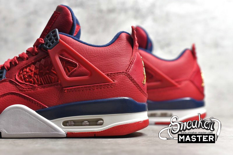 - The Air Jordan 4 Retro 'FIBA' celebrates the international basketball tournament with a color scheme inspired by the US national team. The retro mid-top sports a tumbled leather upper in monochromatic Gym Red, with the netting on the tongue and quarter panel replaced with a unique design that blends the national flags of different countries. Contrasting pops of Obsidian appear on the eyelets and midsole.