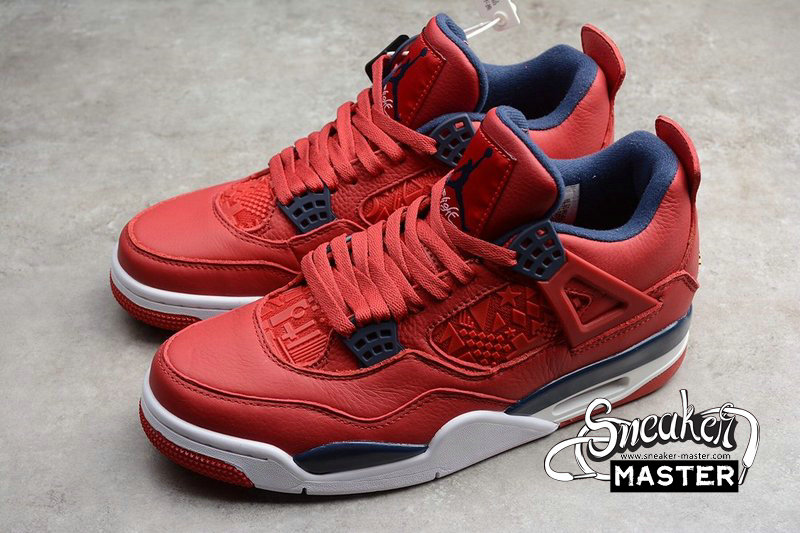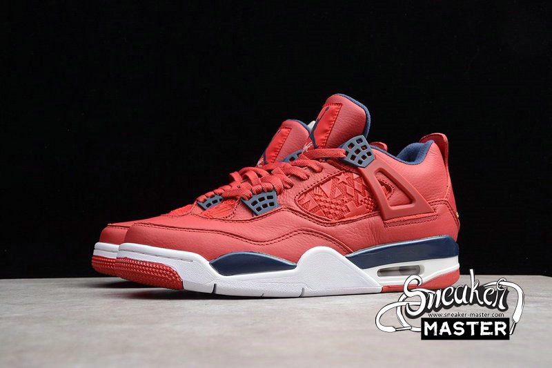 - The Air Jordan 4 Retro 'FIBA' celebrates the international basketball tournament with a color scheme inspired by the US national team. The retro mid-top sports a tumbled leather upper in monochromatic Gym Red, with the netting on the tongue and quarter panel replaced with a unique design that blends the national flags of different countries. Contrasting pops of Obsidian appear on the eyelets and midsole.