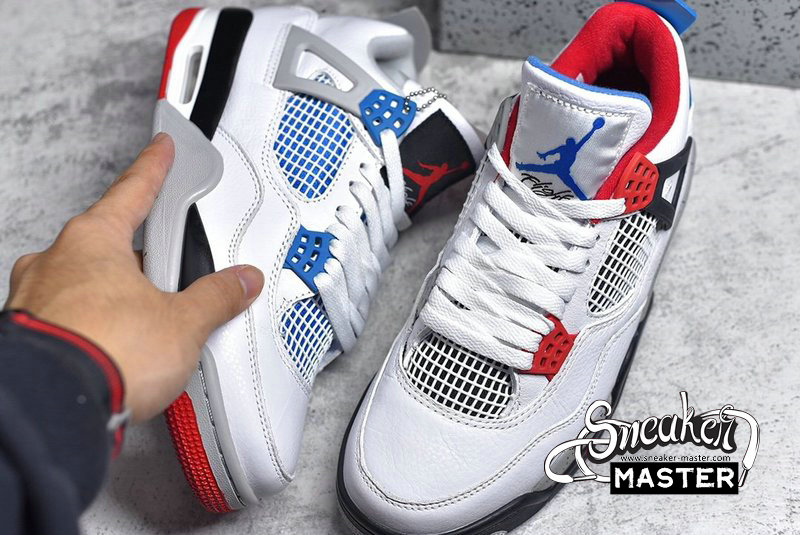 NIKE AIR JORDAN 4 RETRO WHAT THE WHITE/FIRE RED-TECH GREY-MILITARY BLUE CI1184-146