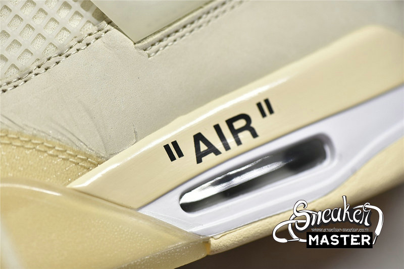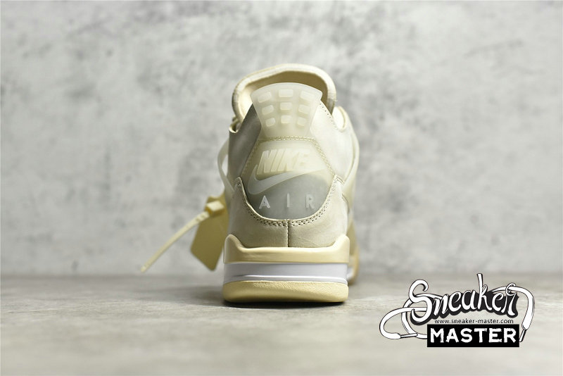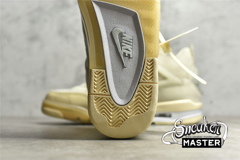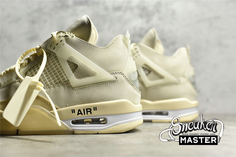 - The OFF-WHITE x Wmns Air Jordan 4 SP 'Sail' released as part of a collaboration between Virgil Abloh's luxury brand and Jordan Brand. The classic basketball silhouette emerges with a deconstructed leather build, finished in off-white and complemented by semi-translucent TPU on the eyelets, wings and heel panel. A tonal zip-tie and 'Air' above the visible cushioning complete the look.