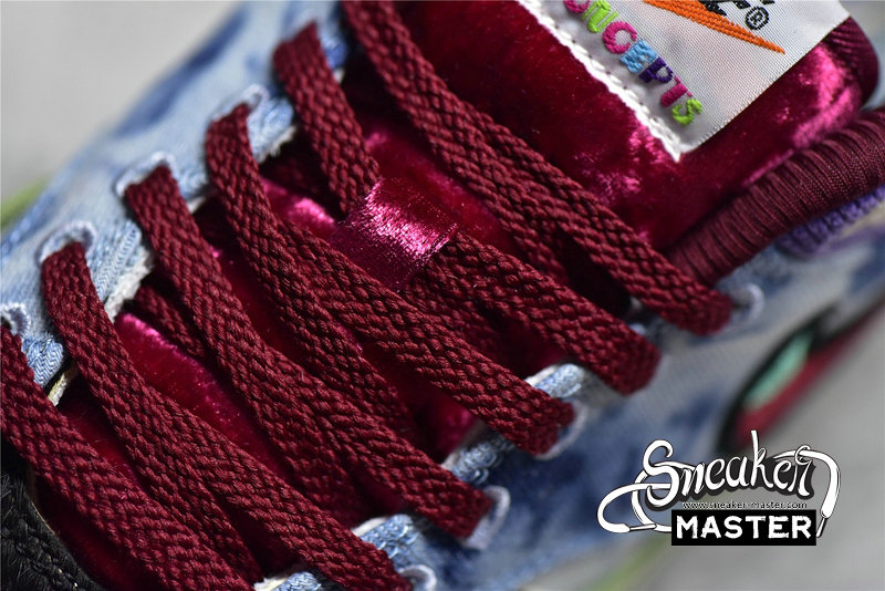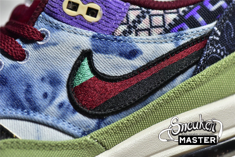 - In collaboration with Boston-based boutique Concepts, the Nike Air Max 1 SP Concepts Mellow pays homage to '60s and '70s youth culture with its fabrication and palette. It is constructed with a medley of bleached denim, ripstop canvas, red velour, and bandana materials, each contrasting one another. The embroidered flower power Swoosh nods to common clothing design themes of the 1970s. At the base, a speckled Air Max sole completes the design.