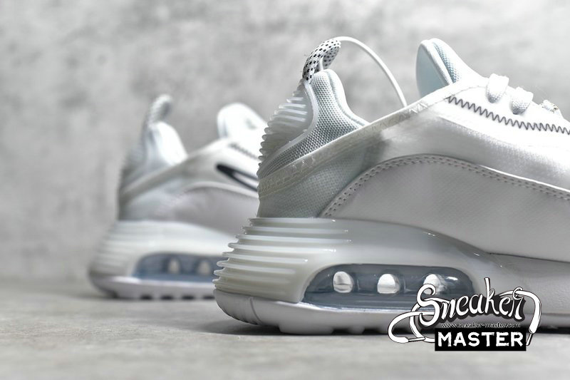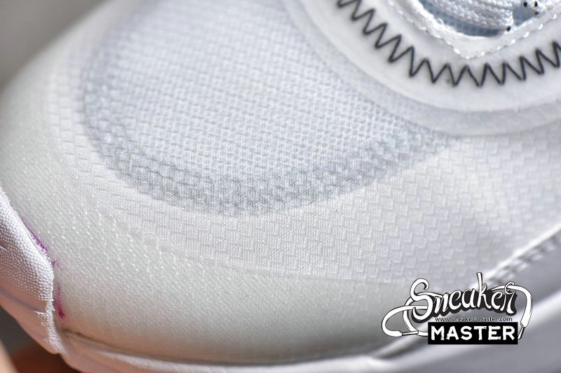 - One of the debut colorways of the silhouette, the Air Max 2090 'White' sports an almost-monochromatic look. The shoe's upper is built with translucent textile, contrasted by zigzag stitching and the Swoosh outline. A leather mudguard supports the fit, while a heel pull-loop provides easy on and off. Underfoot, the midsole incorporates a larger Max Air unit in the heel to provide cushioning.