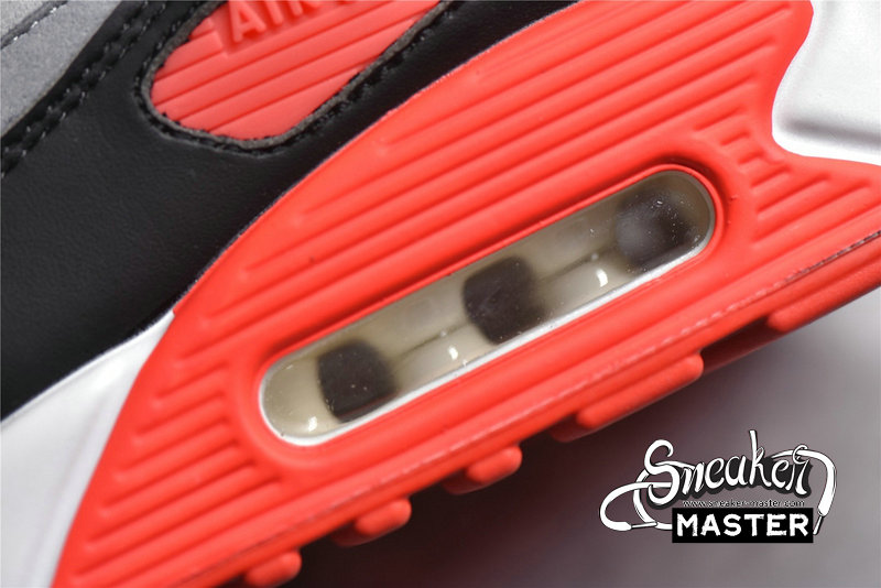 - Releasing to celebrate 30 years of the silhouette, the Air Max 90 'Infrared' 2020 features the silhouette's OG colorway. Built with a white mesh base, the shoe's upper includes grey synthetic suede overlays and a black leather mudguard. The TPU badges and lower eyelets highlight the look in Radiant Red, matched underfoot by the Max Air window that surrounds the signature cushioning system. A waffle rubber outsole is included for traction.