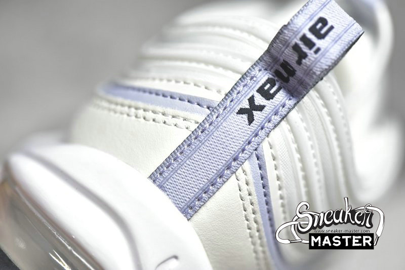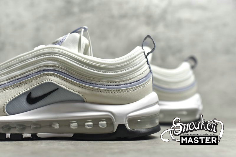 - This Nike Air Max 97 features a Sail, Black, Photon Dust, Ghost and White color combination. Looking closer it features lighter hues throughout the upper along with White leather on the overlays. You will also notice that it comes with a light shade of Blue which is hinted on the tongue, racing stripes, pulls tabs and panels. Other details includes Black branding, White on the midsole and a Black rubber outsole.