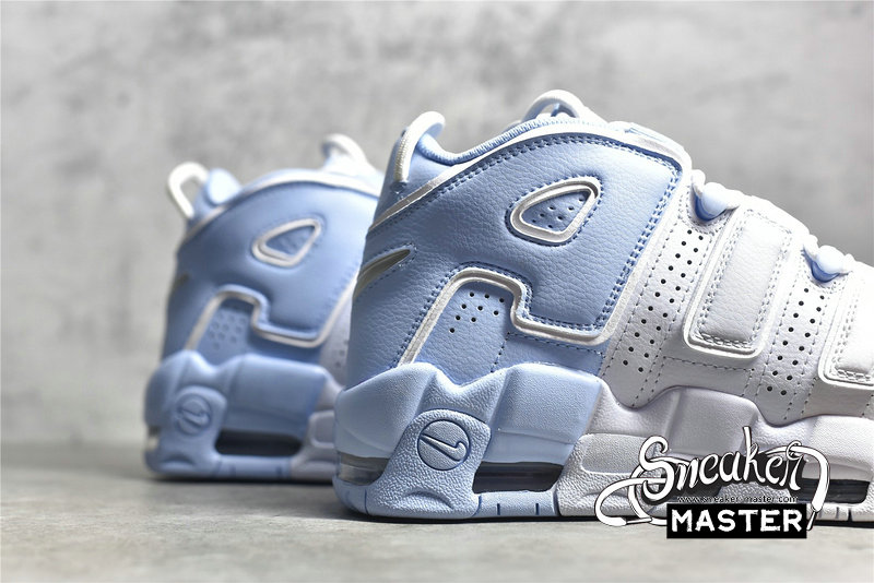 - This Nike Air More Uptempo features a gradient upper that fades from White to a darker shade of Blue. It features a full leather build with signature perforations and bold “AIR” lettering on the sides. The same colors continue on the midsole and rubber outsole.
