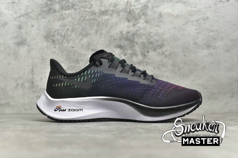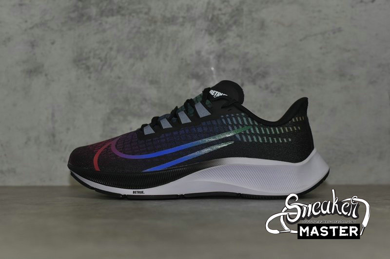 - Celebrating the LGBT community, the Air Zoom Pegasus 37 'Be True' sports a vibrant colorway. The shoe's textile upper emerges with a black base highlighted by a gradient mix of rainbow hues throughout its construction, including on the Swoosh. The tongue and heel both sport 'Be True' branding, while the Air Zoom branding on the midsole includes a rainbow flag. The technology itself emerges inside the React foam midsole for cushioning.