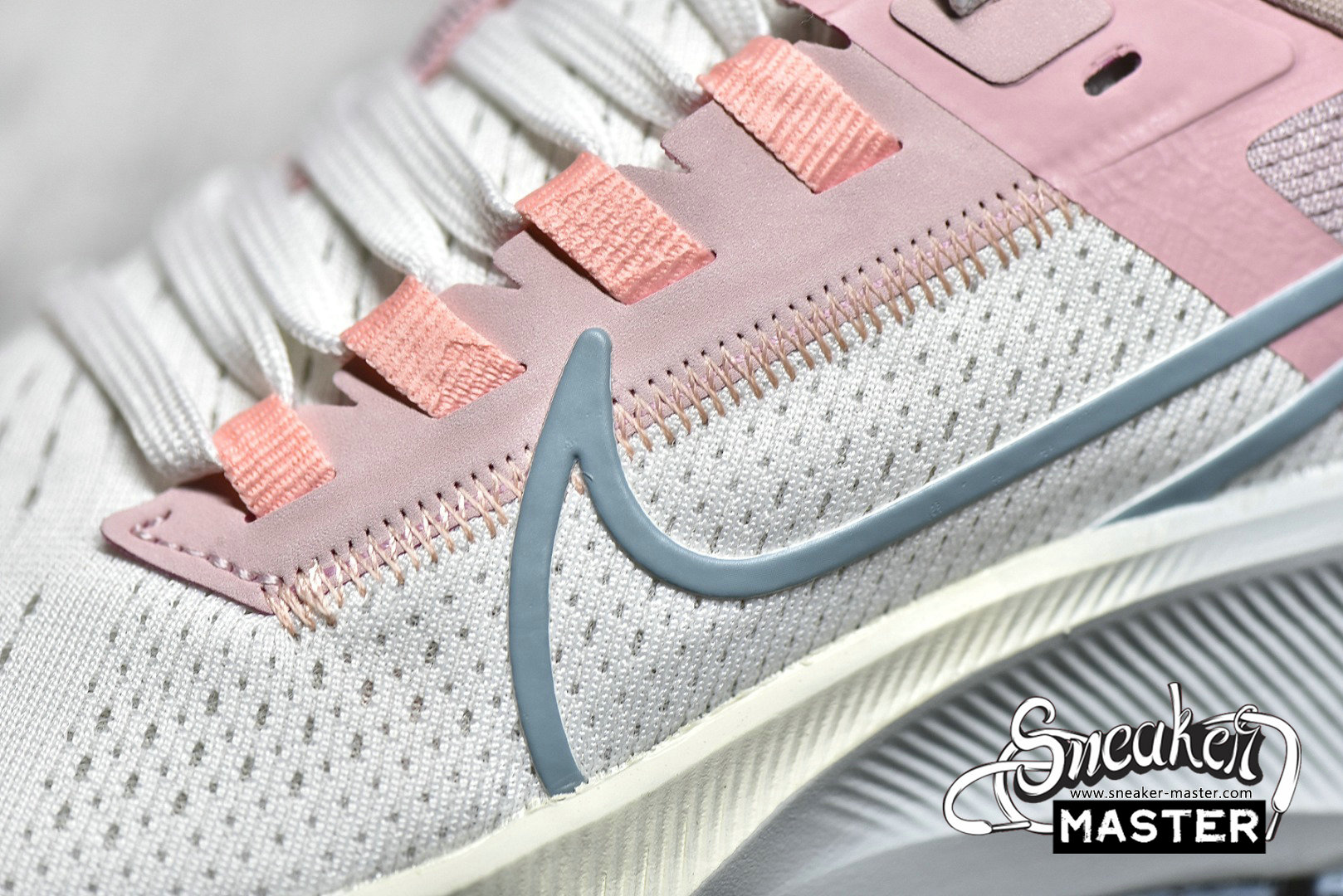 - Adding to the long-running Pegasus line, the Wmns Air Zoom Pegasus 38 'Sail Pink Glaze' emerges with pastel accents. Built with a mesh base, the shoe's upper appears in white, supported by a wider toe box. Blue Swoosh branding complements the lateral side, while pink webbing straps are worked into the lacing system to secure the fit. Underfoot, Nike React provides cushioning, working with forefoot Zoom Air, while a rubber outsole offers traction.