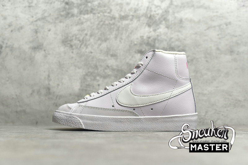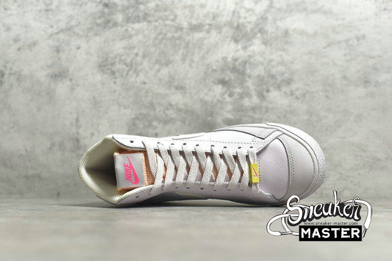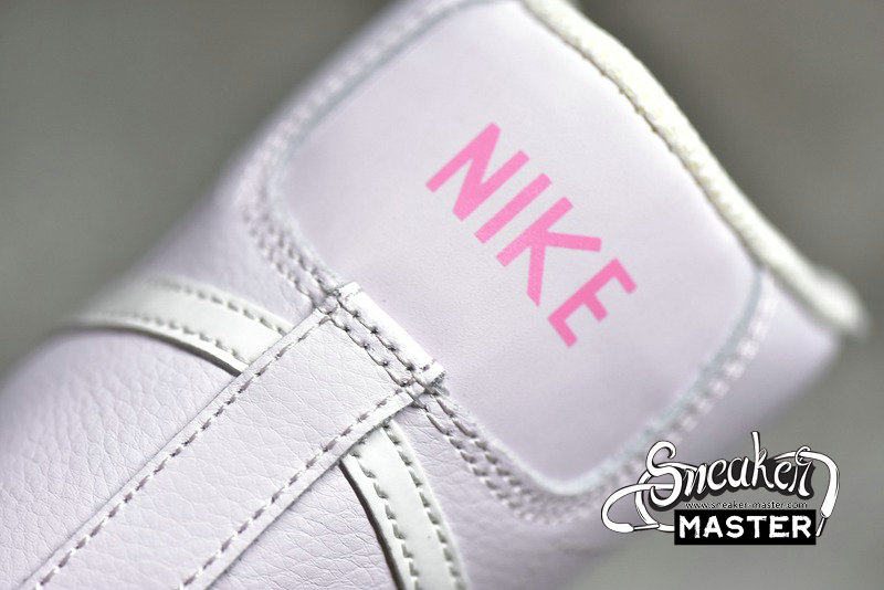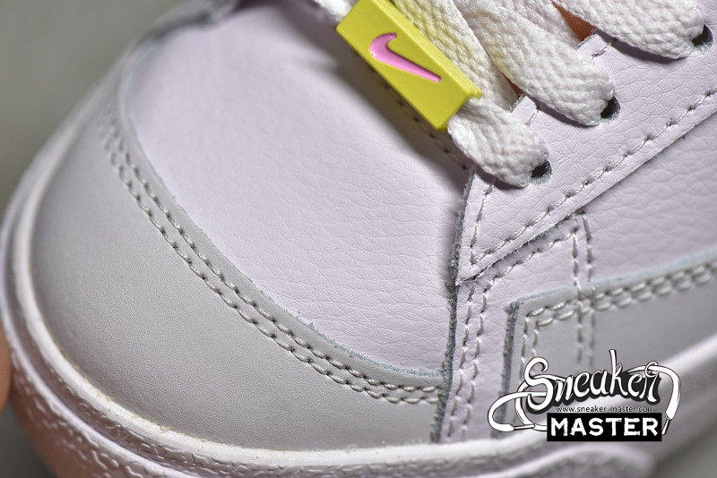 - This Nike Blazer Mid features Pink tumbled leather upper with smooth leather on the heel and suede overlays up front. White leather Swooshes on the sides, Yellow special lace dubraes and insoles, padded tongues atop a solid Pink rubber sole completes the design.