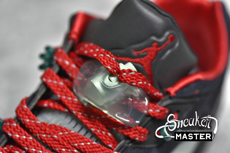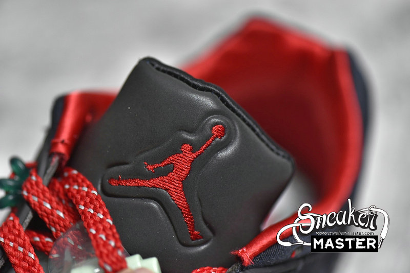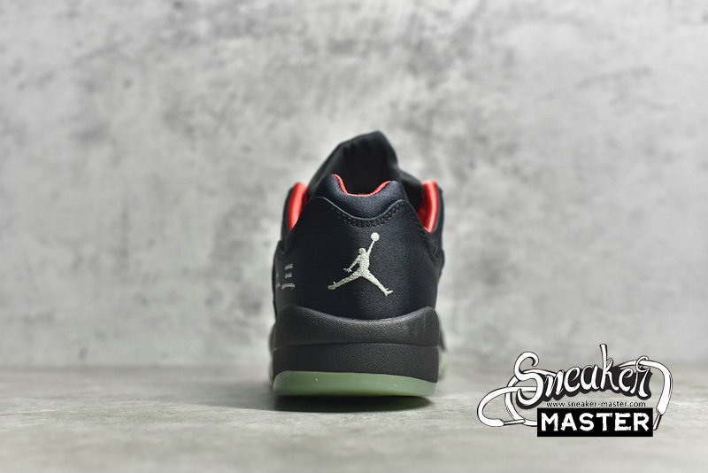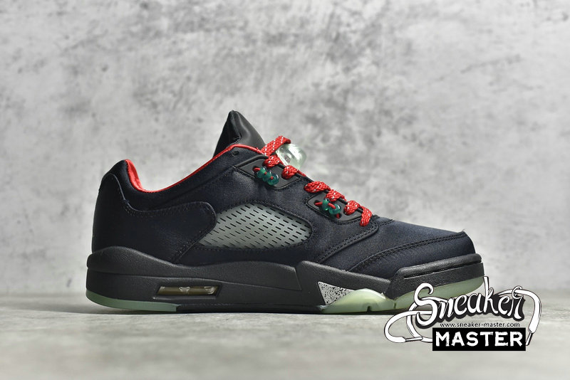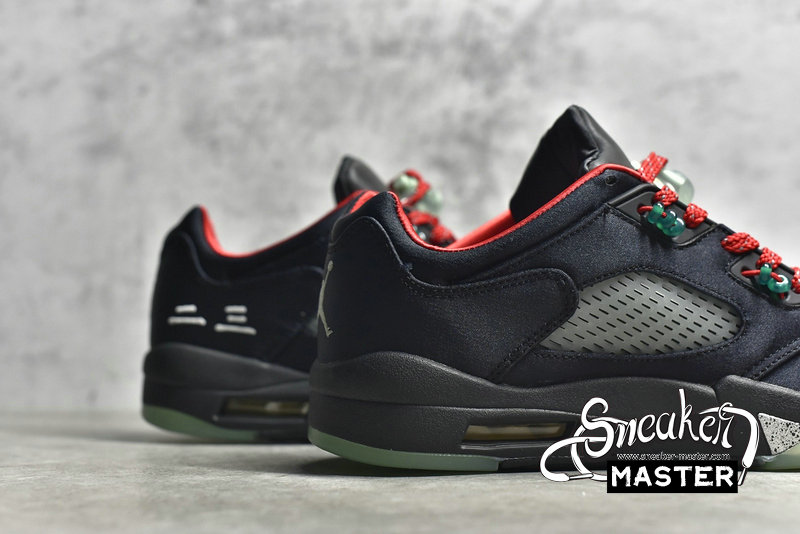 - This offering of the Clot x Air Jordan 5 Low features a Black base with Red contrasting accents, Silver 3M reflective tongues and speckled shark teeth on the Black midsole. Additional details includes Clot branding on the back heel with Green lace locks and translucent glow-in-the-dark outsoles.