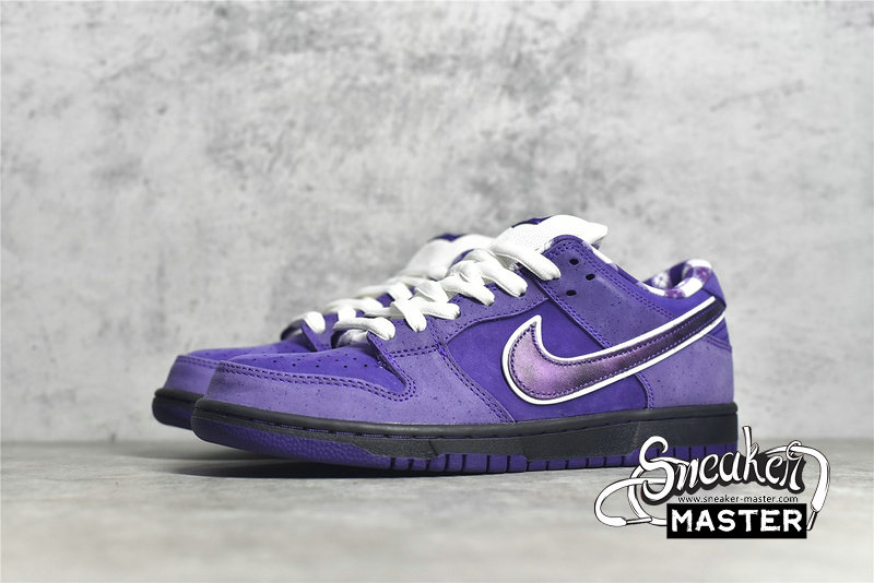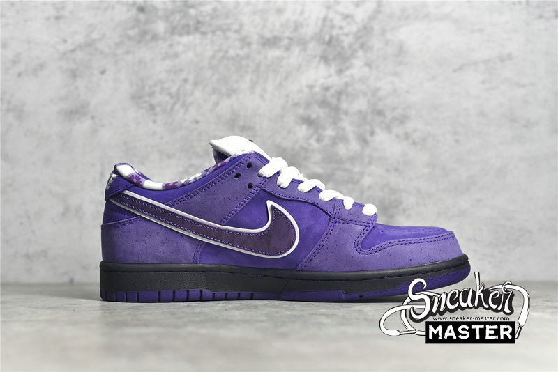 - Concepts and Nike SB are back with a new iteration inspired by the 'Lobster.' Similar to the three past executions, the Dunk Low Premium SB 'Purple Lobster' is influenced by strange color specimens discovered in nature due in part to genetic abnormalities that make their exoskeleton appear in distinct colors, such as yellow, blue and purple. Special details include a plaid pattern on the lining, red and white, and an elastic band wrapped around the forefoot comparable to how lobster claws are secured.
