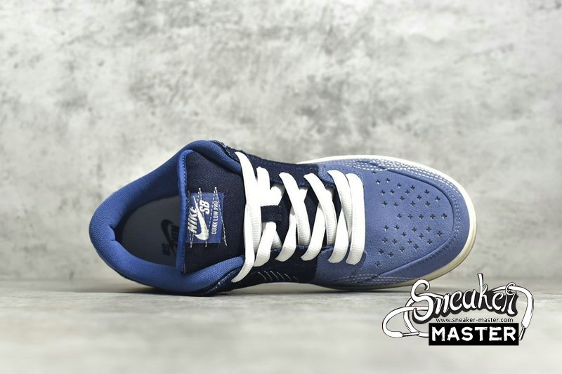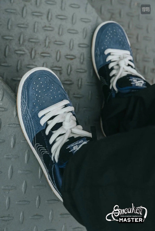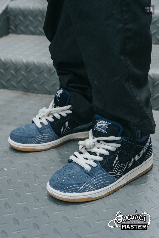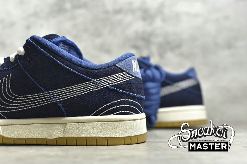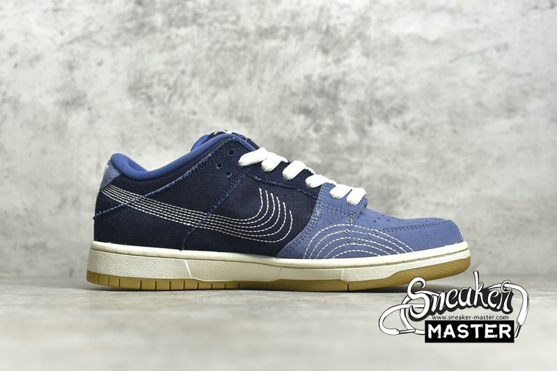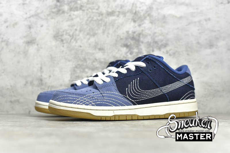 - Inspired by traditional Japanese needlework embroidery, the Dunk Low Pro PRM SB 'Sashiko Pack' emerges with decorative stitching throughout its construction. The upper itself is built with suede and denim, finished in different shades of blue. A stuffed tongue is included for comfort, while Zoom Air in the heel of the sockliner provides cushioning. A gum rubber outsole is included for traction.