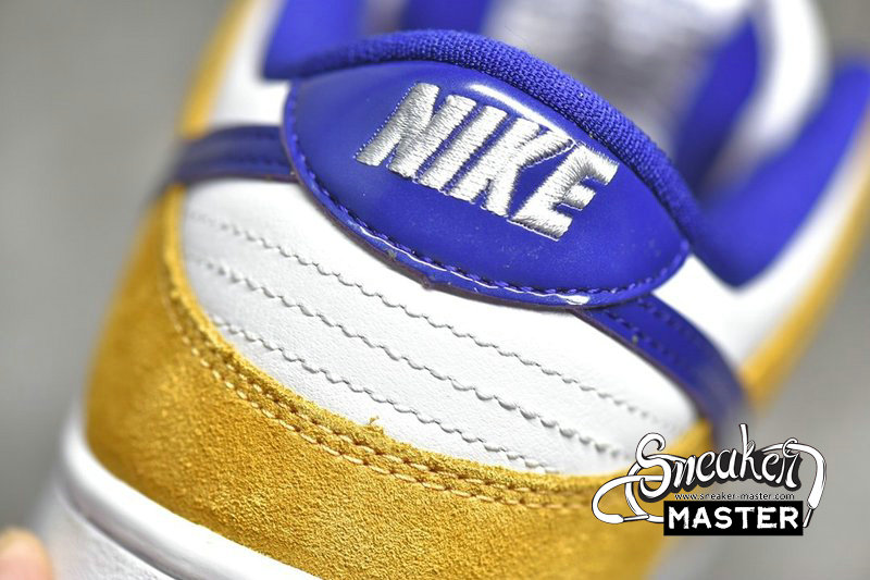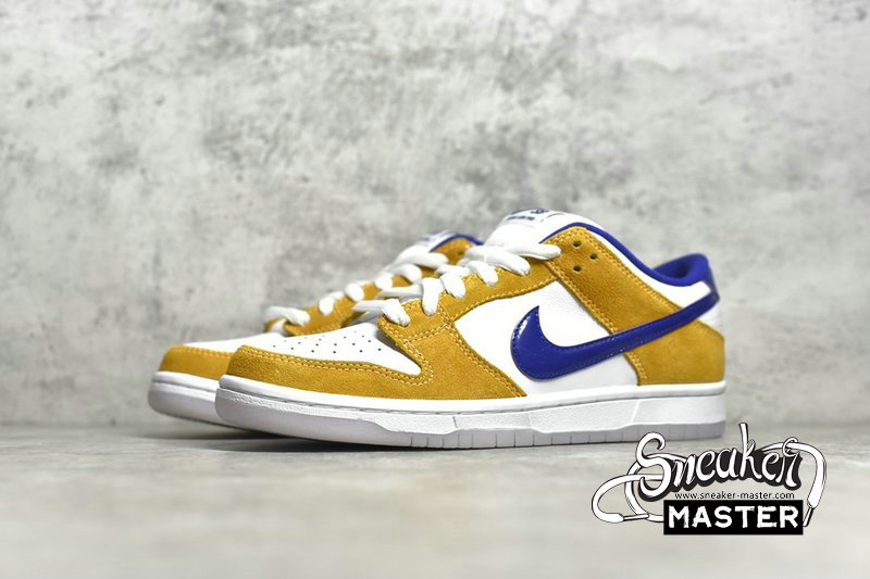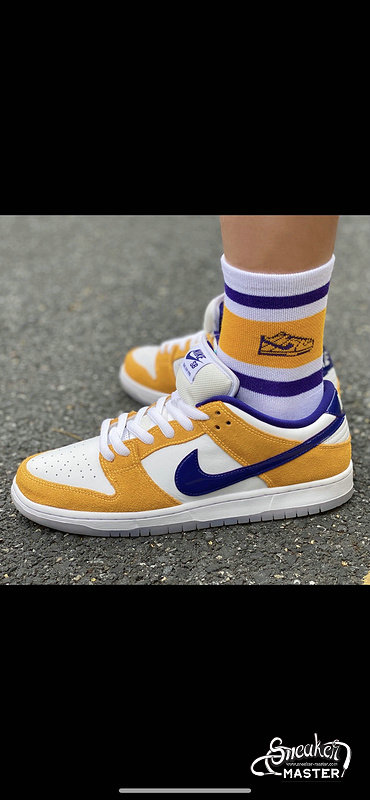 - The Nike SB Dunk Low “Laser Orange” is a vibrant colorway of the beloved Dunk silhouette from Nike’s skateboarding division. The crisp, casual, and easy to wear design features Laser Orange suede overlays on the forefoot, collar, and quarter panel. A clean white leather base appears on the perforated toe, mid-panel, and heel. A purple patent leather Swoosh is located on either side.