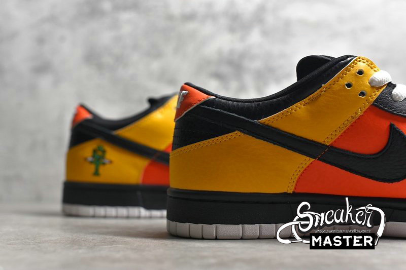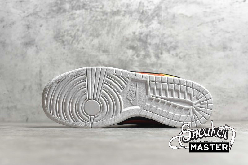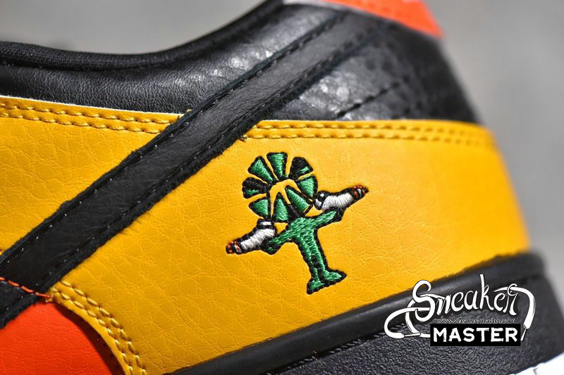 - The Dunk Low Pro SB 'Raygun' pays tribute to the fictional ABA team known as the Roswell Rayguns. The shoe's Orange Flash, red and black palette is drawn from the team's home uniforms, while the team's logo itself appears on the lateral heel.