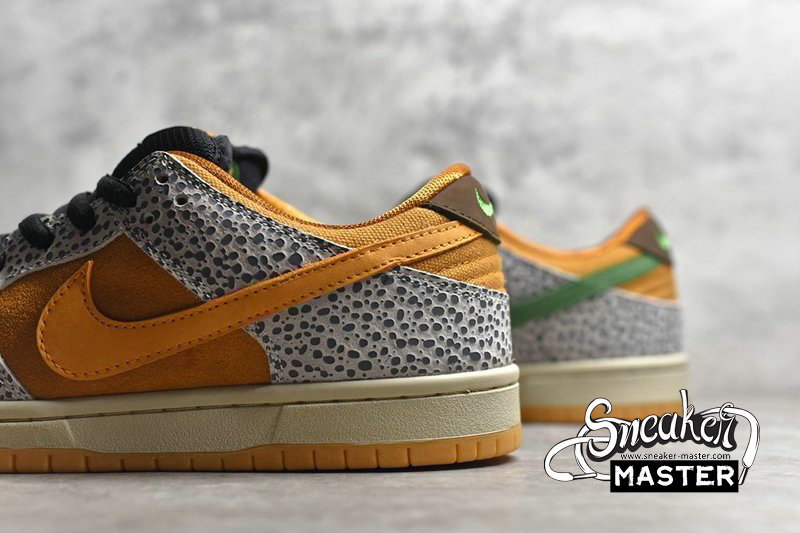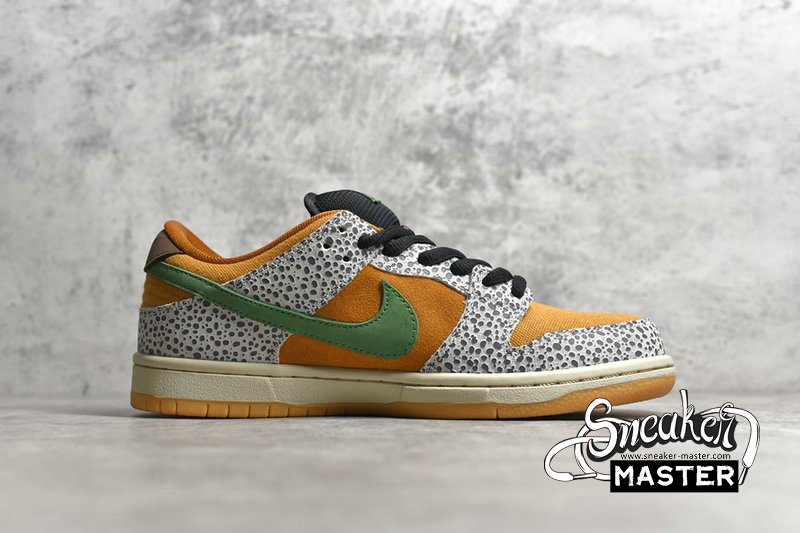 - Inspired by atmos' Air Max 1 collaboration from 2003, the Dunk Low Pro SB 'Safari' emerges with a safari print throughout its construction. Built with a mix of canvas and suede, the upper's orange base is complemented by mismatched Swoosh branding. Underfoot, a gum rubber outsole is included for traction.