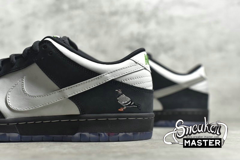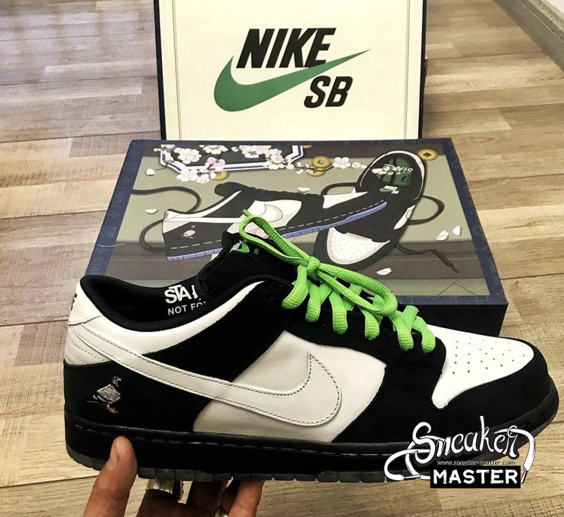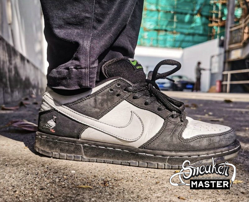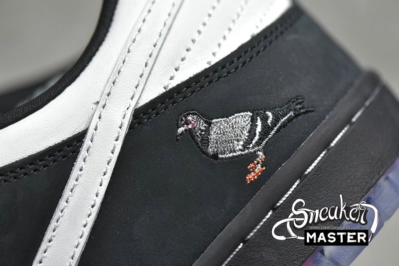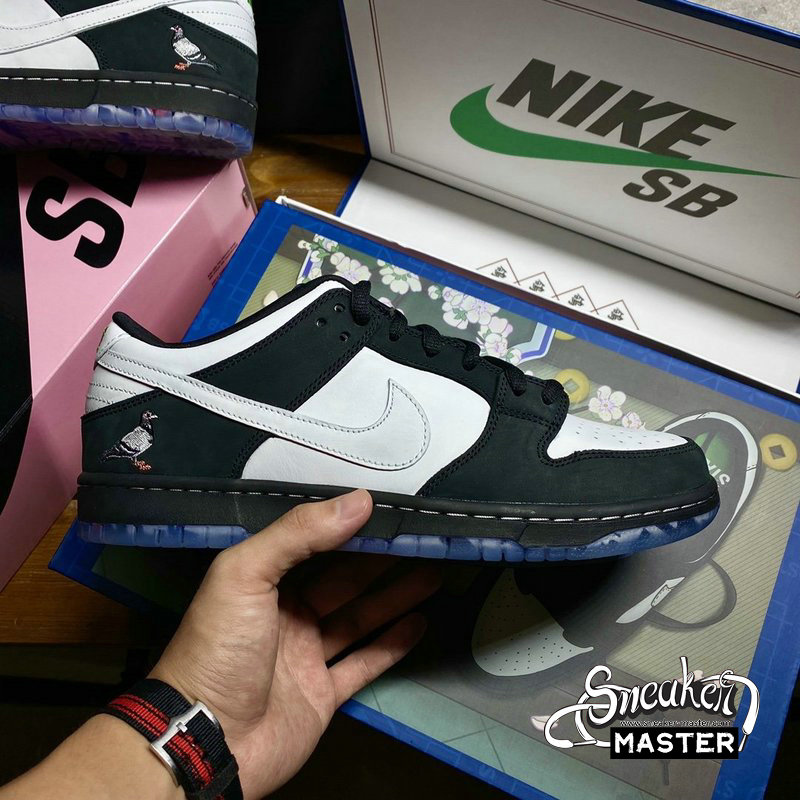 - The Jeff Staple x Dunk Low Pro SB ‘Panda Pigeon’ extends Staple’s enduring collaboration with Nike SB. The moniker lives up to its name with a black and white pattern on the leather and suede upper, finished with the integral pigeon on the lateral heel. A translucent outsole displays a collage of newspaper headlines referring to the legendary Pigeon Dunk launch from 2005.