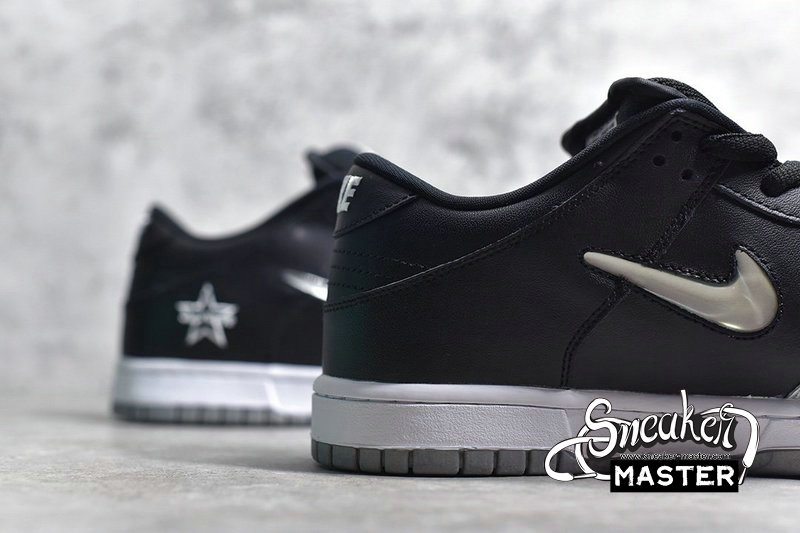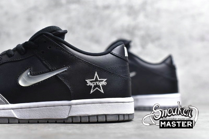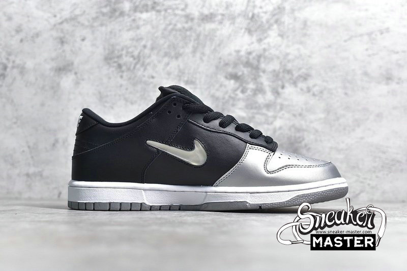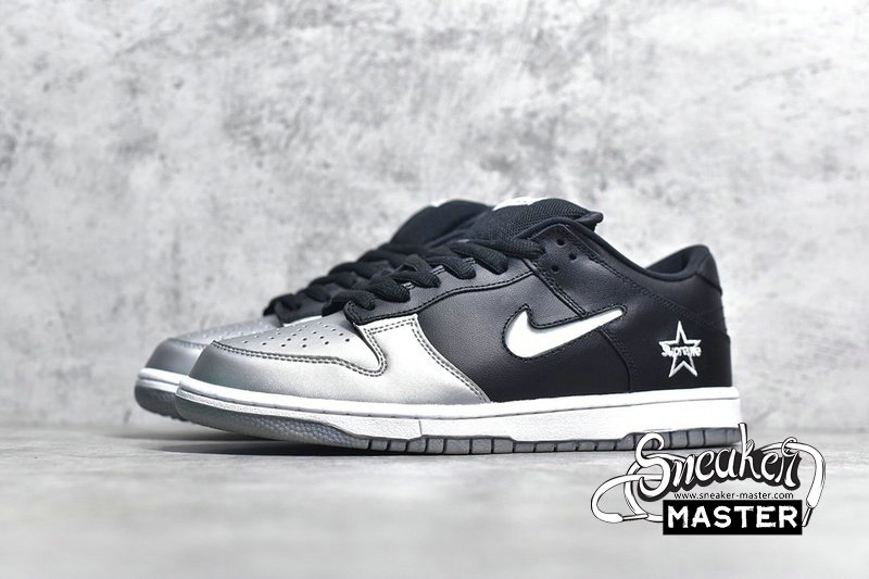 - The Supreme x Dunk SB Low 'Metallic Silver' is one of three colorways that dropped in September 2019 from the frequent partner brands. The low-top features a black leather upper, accented with a metallic silver jewel Swoosh and matching metallic silver on the forefoot and rubber outsole. Embroidered Supreme branding on the lateral heel is the finishing touch.