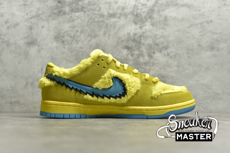 - The Grateful Dead x Dunk Low SB 'Yellow Bear' is the result of a collaboration between Nike and the Grateful Dead. Inspired by the back cover of History of the Grateful Dead, Volume One (Bear's Choice), a live album originally released in 1973, the shoe emerges with a furry construction on the upper bolstered by tonal suede overlays. The jagged Swoosh and tongue complement the look in blue, with a stash pocket on the latter element. The two-tone look continues onto the tooling.