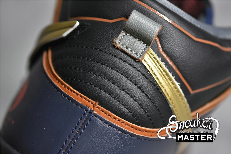 - This “Thunder Blue/Metallic Gold” colorway derives from the Japanese anime franchise Gundam, particularly from the Mobile Suit Gundam Unicorn, a novel from the Gundam universe in celebration of its 15th anniversary. To further encapsulate the theme, the model bears a distinct logo printed on the heel, followed by geometric Swooshes that are interchangeable as a nod to its toy counterpart. Finally, the paneled aesthetic throughout the upper reflects the style of the Gundam suit to round out the design.