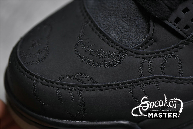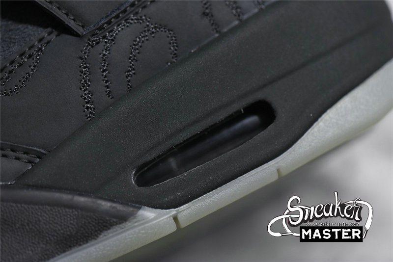 - This KAWS x Air Jordan 4 Retro black colorway was released in November 2017, several months after the first Air Jordan 4 collaboration by the famous Brooklyn artist – a gray colorway that droped in March 2017. The shoe features an all-suede cap like its predecessor, featuring a subtle tonal print portraying the cartoon hands of the popular Companion figure of KAWS. Under the translucent glow-in - the-dark outsole are the same hands. The signature of the artist ' XX, ' juxtaposed above the trademark of Nike's ' AIR, ' is engraved on the heels.