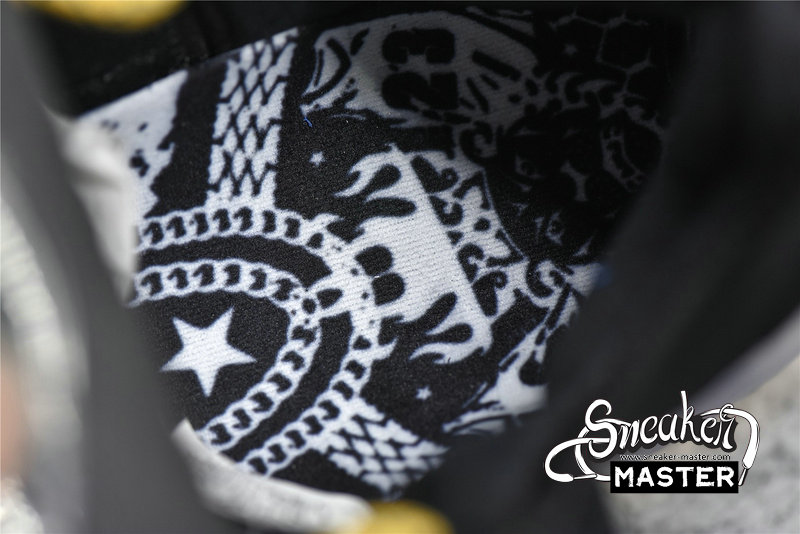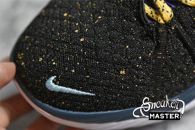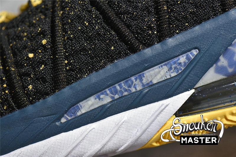- The upper is made of black Knitposite 2.0 on the forefoot and midfoot, with white and gold spots. The heel is made of a more standard black synthetic material and is secured by a plastic clip to provide the most prominent details of the shoe. The clip can provide a full range of printing, from nets to LeBron’s silhouettes, gold chains, tire tracks and chain link fences, everything. The left and right shoes alternate between blue and gold on the laces, heel and forefoot Swooshes. Due to the use of a variety of blue and earthy tones, the midsole and outsole have similar asymmetric color blocks. Finally, the high heels use a hybrid cushioning setting, sandwiching the Zoom Air and Air Max to achieve speed, support and explosive effects.