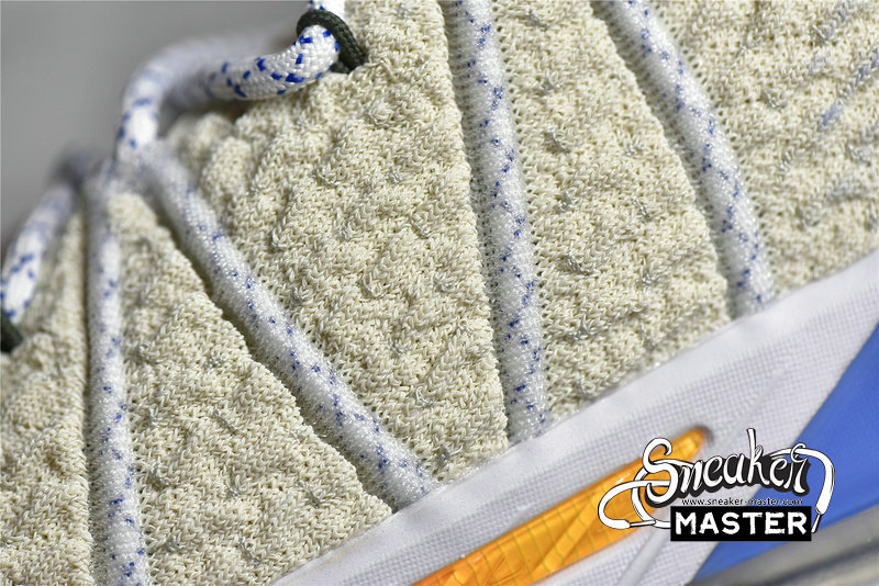 - A sand-hued knit upper takes over much of the model’s mid and forefoot, and is reminiscent of the City of Angels’ 72 and sunny shoreline. The visible Air units on the tongue contrast their off-white surroundings with shades of pink, yellow and blue, all of which appear on the LA-themed graphic beneath the the translucent heel clip. Designed with power and stability in mind, the LeBron 18‘s rear construction features a textile collar reinforced by a protruding plastic mold, the former boasting palm tree and sailboat motifs.
