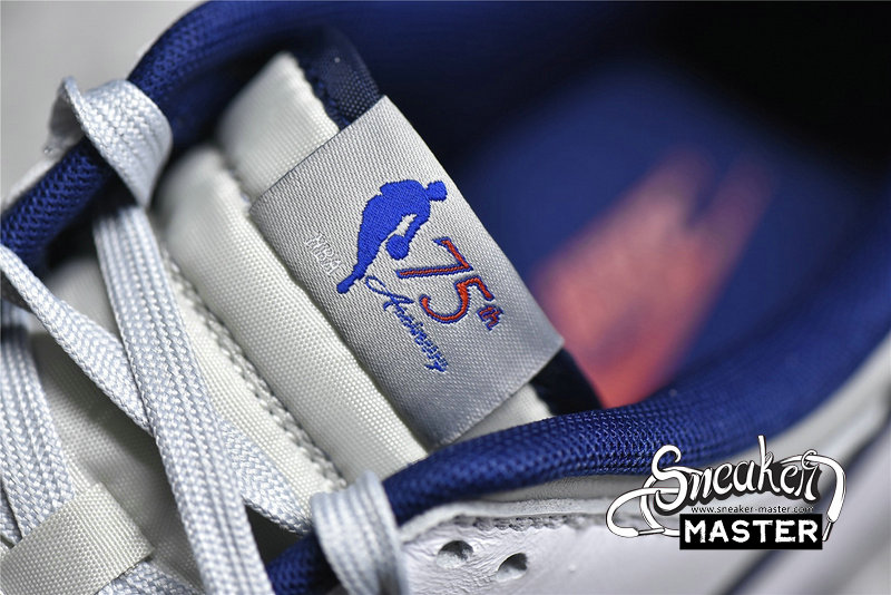 - The shoe features a Grey base with Navy and White overlays along with Red branded heels and stitching on the White midsoles. Other details includes the NBA’s NBA’s 75th Anniversary branding on the tongue tag, special lace dubrae honoring the league’s Diamond Anniversary completed with a Navy rubber outsole.