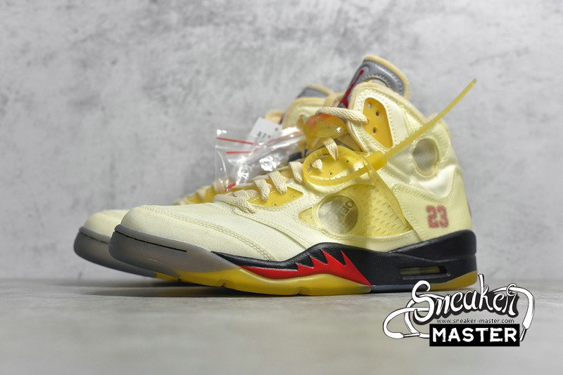 NIKE OFF-WHITE X AIR JORDAN 5 SP SAIL/FIRE RED/MUSLIN/BLACK DH8565-100