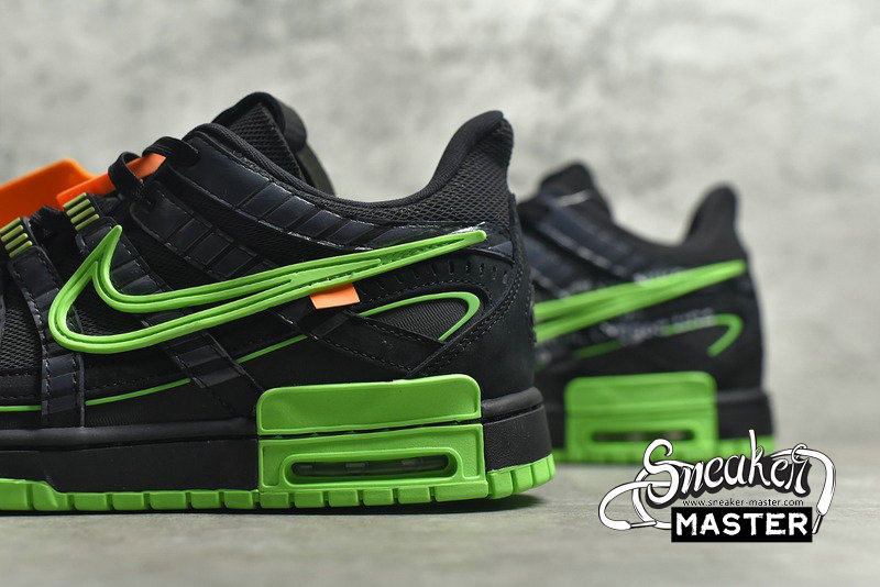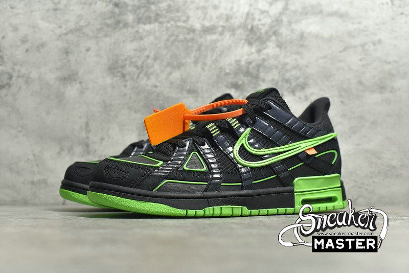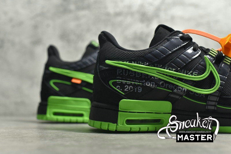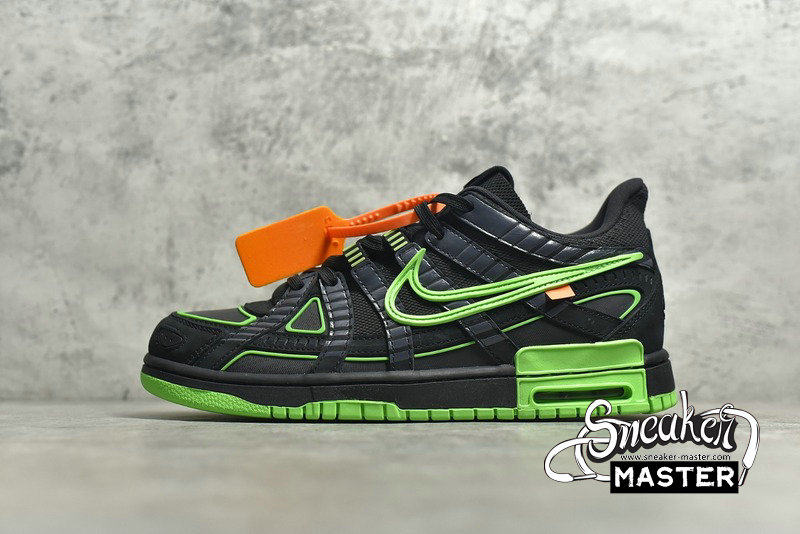 - The Off-White x Air Rubber Dunk 'Green Strike' released as part of a collaboration with Virgil Abloh's luxury streetwear brand. Updating the classic silhouette, the shoe's upper features the layered design of the P-6000. Finished in black and Green Strike, the upper is highlighted by orange on the hang-tag. 'Nike Off' emerges on the tongue tag, while 'Shoelaces' marks the shoelaces. Underfoot, the midsole includes visible Air in the heel for cushioning.