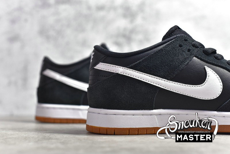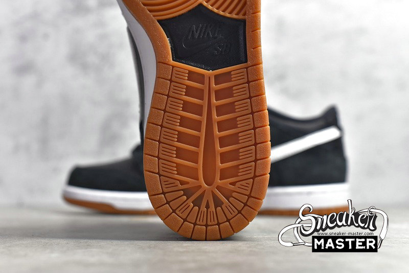 - The Zoom Dunk Low Pro SB 'Black Gum' features a simple colorway with an elevated finish. The leather and suede upper is finished in black, with a contrasting white Swoosh cutting through the quarter panel. The white midsole gives way to a gum rubber outsole for a luxe touch.