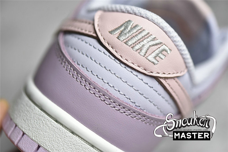 - This offering of the Nike Dunk Low arrives in a mix of pastel hues featuring a Blue base with Purple overlays and Pink Swooshes, heels, and tongue labels. The pastel Blue tone continues on the nylon tongues, laces, and liners atop a White midsole and Light Purple rubber outsole completes the design.