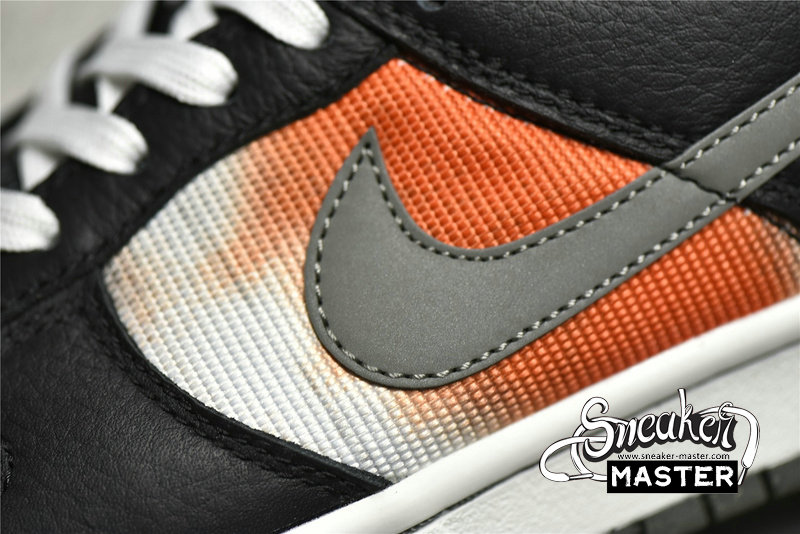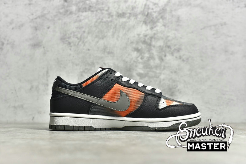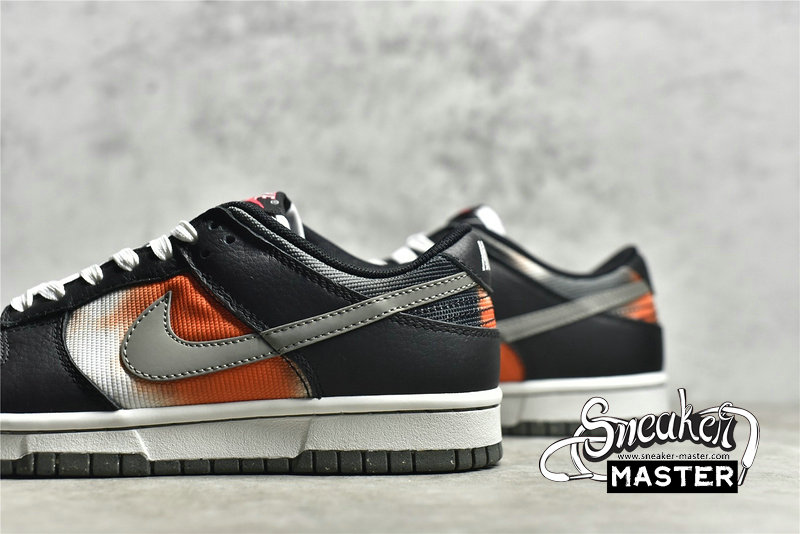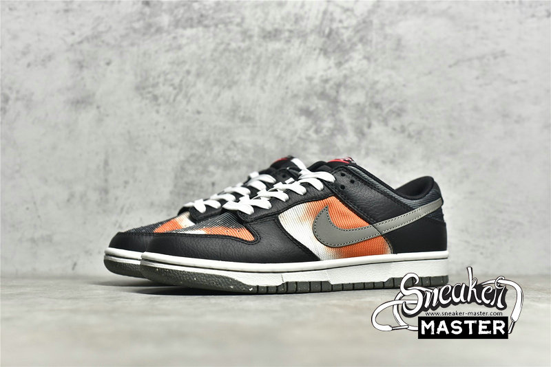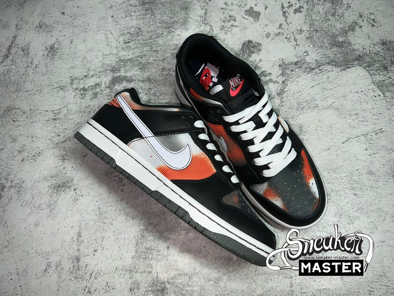 - This offering of the Nike Dunk Low features a spray paint design covering its canvas base in a mix of Red, Grey, Black, and White. Other details includes Black leather overlays and Silver 3M reflective Swooshes. Grind Rubber outsole with graffiti-styled insoles and box completes the design.