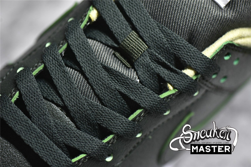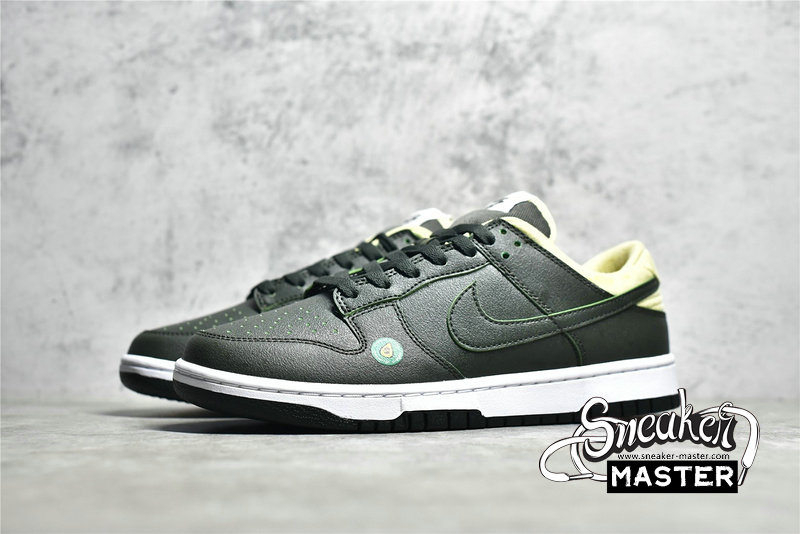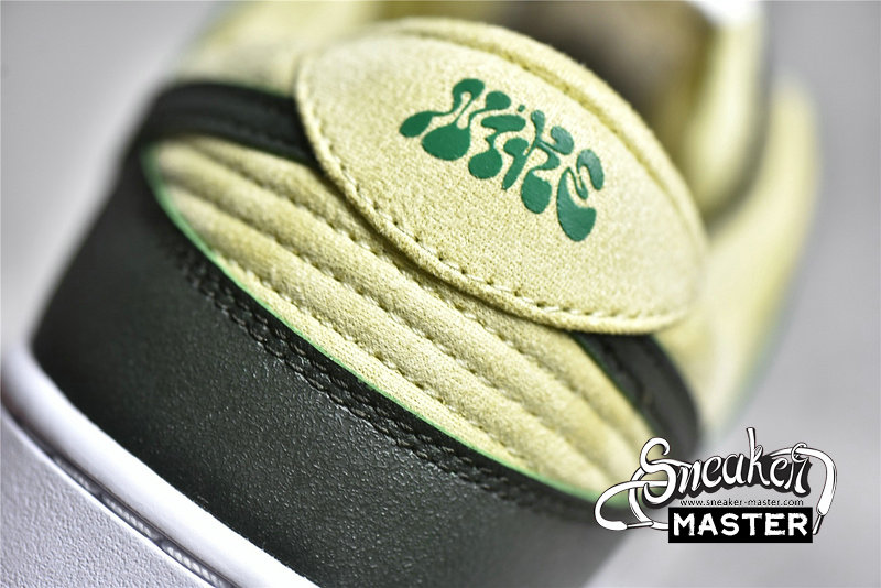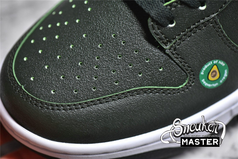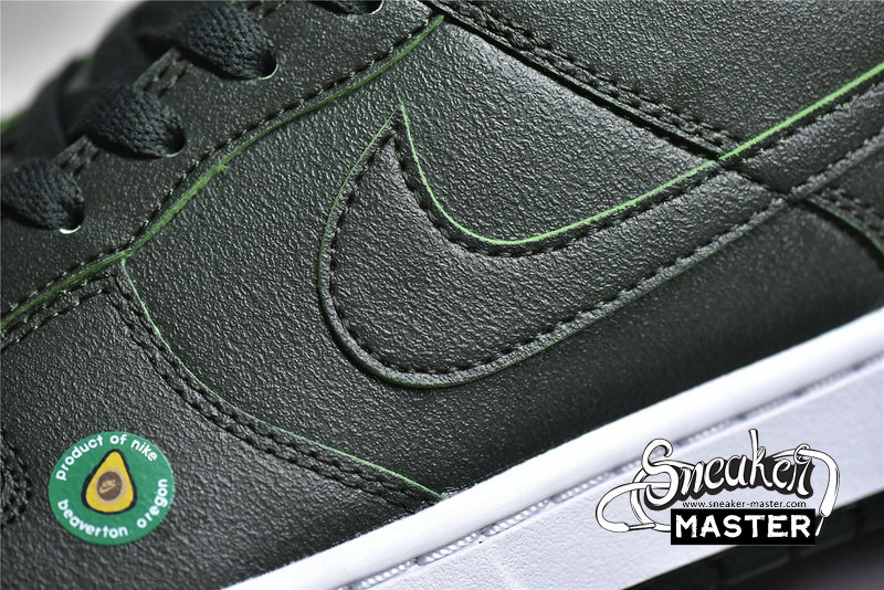 - The sneaker features a dark green upper with a tearaway upper that shows a brighter green underneath, similar to an avocado. A graphic inspired by a sticker seen on avocados is placed on the lateral side of the mudguard with the rear of the sneaker seen in a pale yellow. Groovy Nike branding is placed on the heeltab with a white midsole and black outsole finishing off the sneaker.