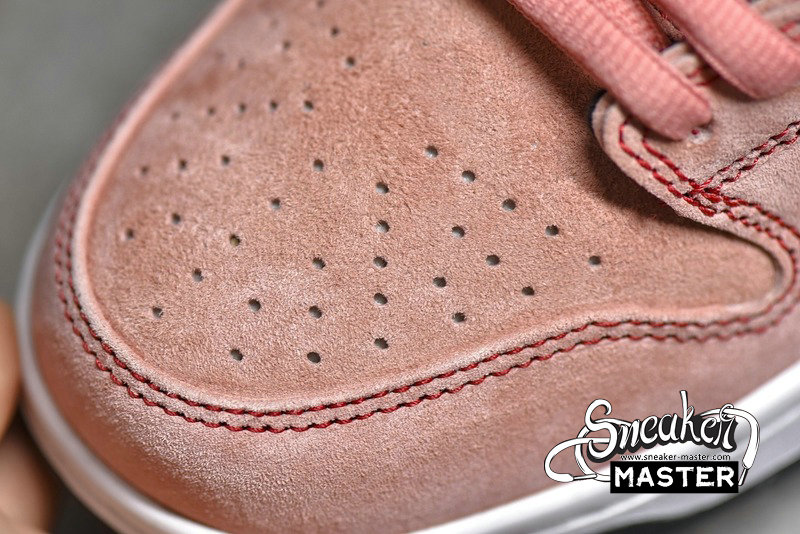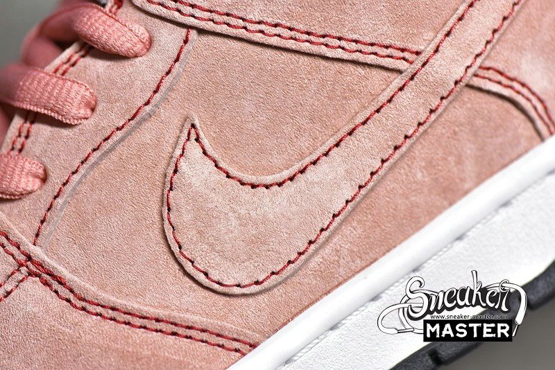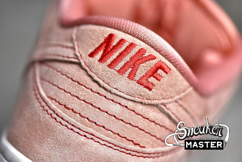 - This Nike SB Dunk Low features an Atomic Pink, University Red, and White color combination. Highlighted with Pink premium suede across the uppers while the same shade covers the laces, mesh tongue, and perforated toe box. Furthermore, Red adorns the Nike SB branding on the tongue, insoles, and embroidered ‘NIKE’ across the heel. Lastly, a White midsole and Black rubber outsole finish the look.