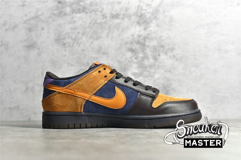 - Dressed in a Off Noir, Cider, Dark Chocolate, and Wild Berry color scheme. This Nike Dunk Low comes constructed in a mix premium suede and leather materials highlighted with Berry accents on the branded tongues and heels. A Noir midsole atop a Chocolate Brown rubber outsole completes the design.