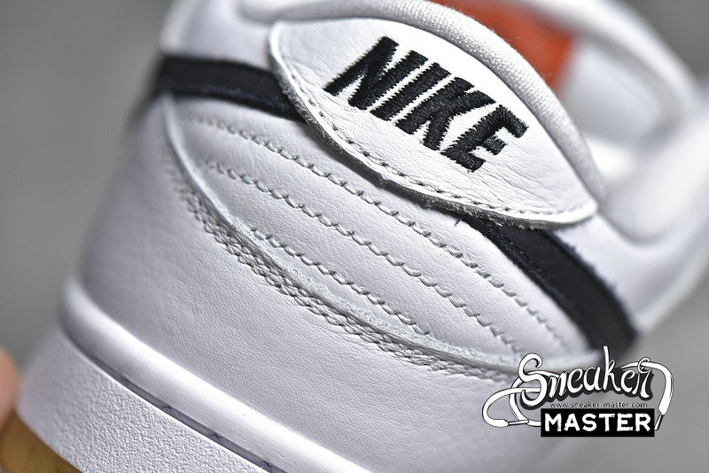 - The Nike SB Dunk Low Pro Orange Label is an old-school basketball style infused with skateboarding style. The Dunk silhouette has a clean white leather upper with a gum rubber outsole and black detailing on the Nike Swoosh, heel branding, and tongue tab. The shoe's signature orange label hides underneath the tongue, as well as on the inside of the heel.