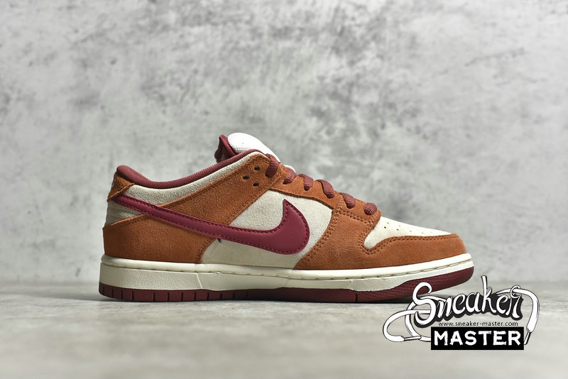 - The Dunk Low Pro SB 'Dark Russet' puts a vibrant look on the skate classic. The shoe's upper is built with a Summit White suede base, overlaid by Dark Russet suede on the forefoot, heel and eyestay. A Cedar leather Swoosh complements the side wall, while a padded collar and Zoom Air in the sockliner support the fit. Underfoot, the rubber outsole includes a circular traction pattern.