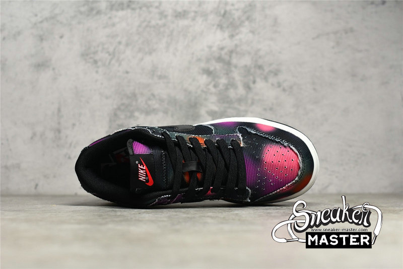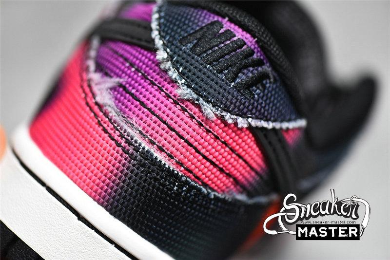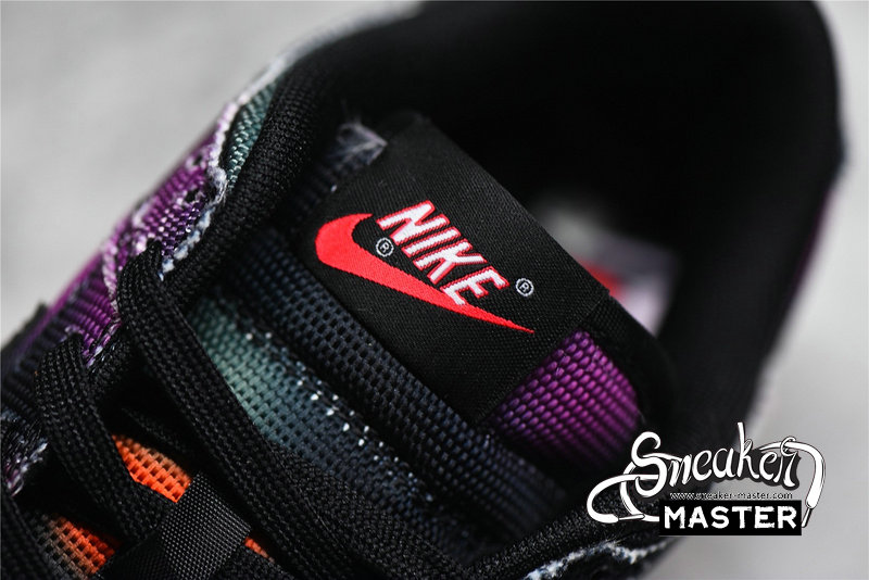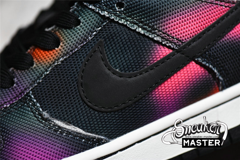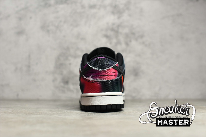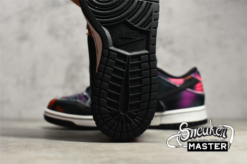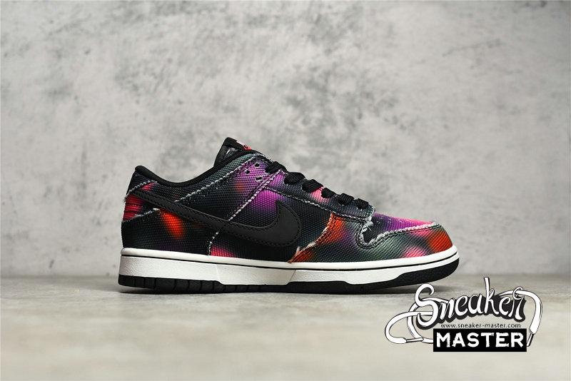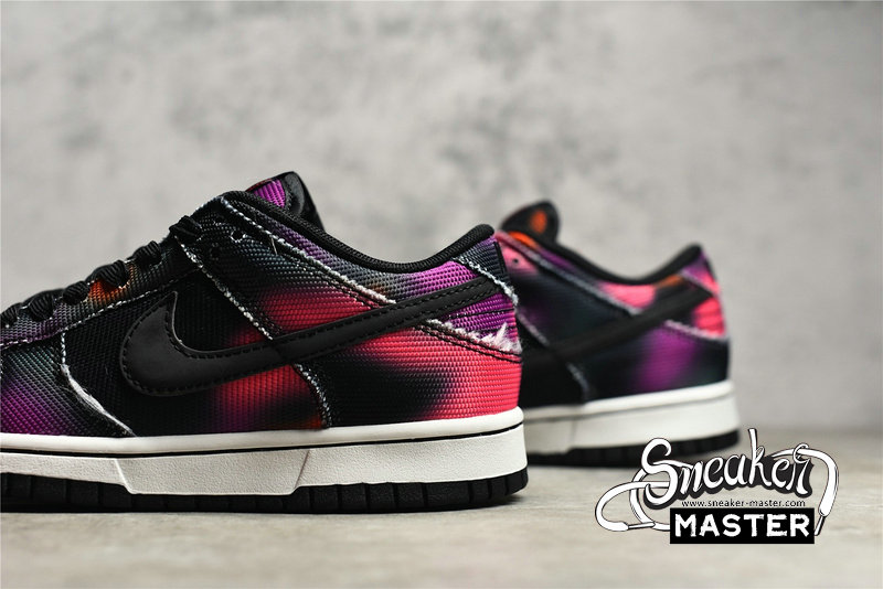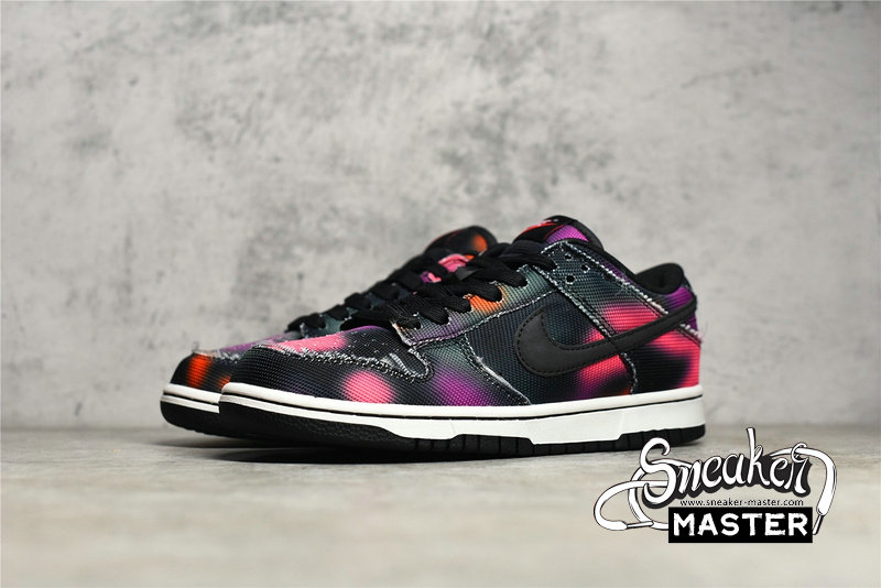 - This offering of the Nike Dunk Low features a canvas base fully covered in a graffiti-like blotchy pattern dressed in a mix of Purple, Pink, Grey, and Black tones that extends onto the tongues. Black laces, Reflective Swooshes, and rubber outsole with a graphic insoles atop a White midsole completes the design. The Dunk Lows will also comes housed in a graffiti-covered box.