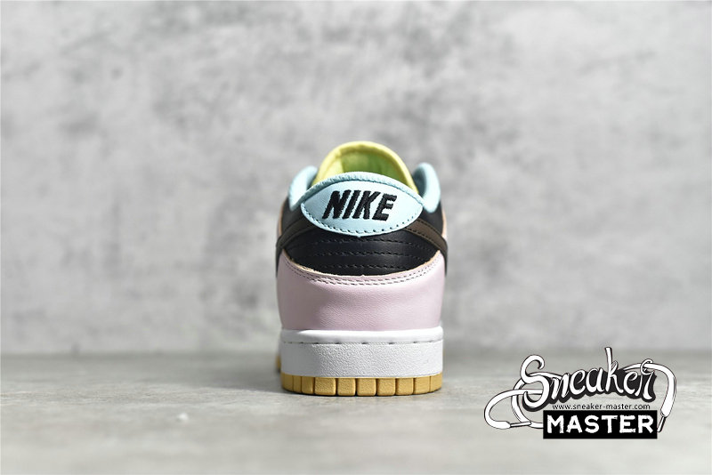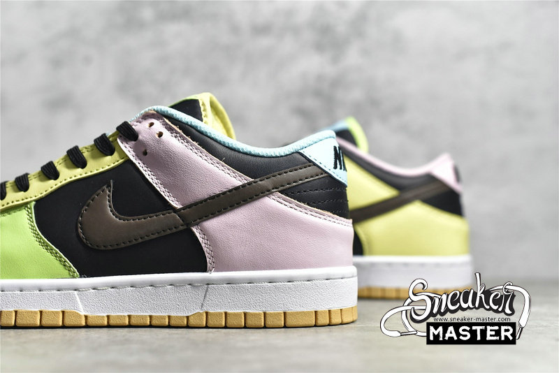 - The Dunk Low SE ‘Free.99 - Black’ brings mismatched pastel accents to its retro basketball construction. The shoes' uppers are highlighted by a mix of powder blue, yellow, pink and green on its overlays, which stand out against a shared black leather base. Underfoot, both shoes include white midsoles and orange rubber outsoles, while both sockliners sport 'Free.99' price stickers.