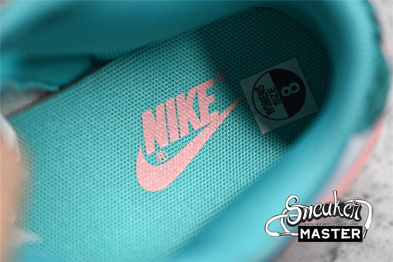 - This offering of the Nike Dunk Low features a White leather base and midsole with Green Teal snakeskin print overlays and heels. The Teal hue continues on the laces, tongue tags, and sockliner while having Pink Swooshes, branding, and rubber outsole to complete the design.