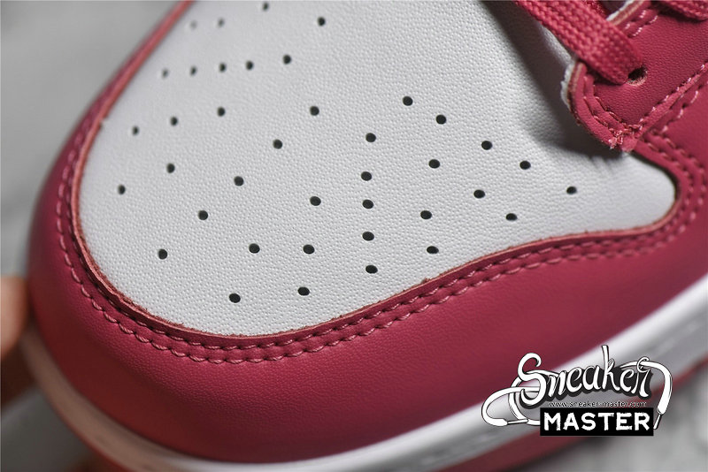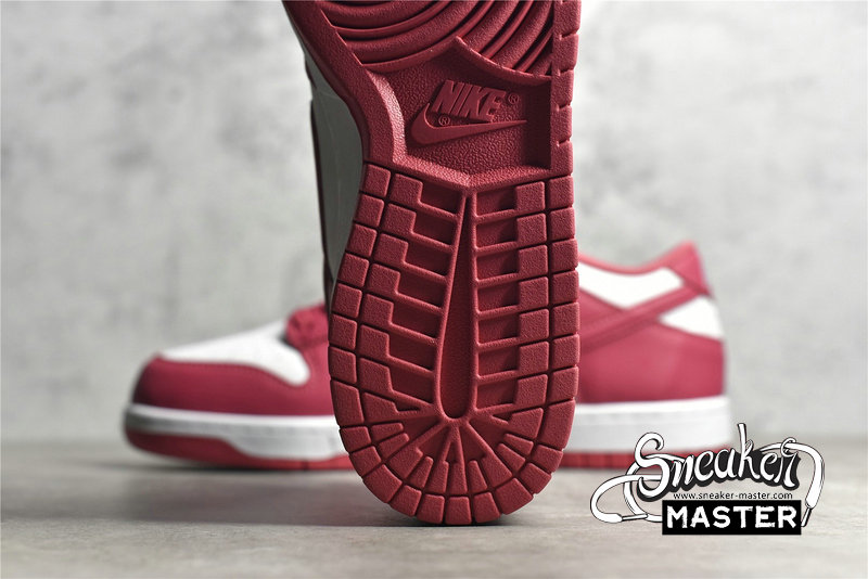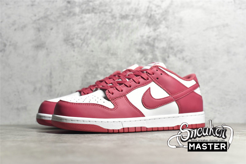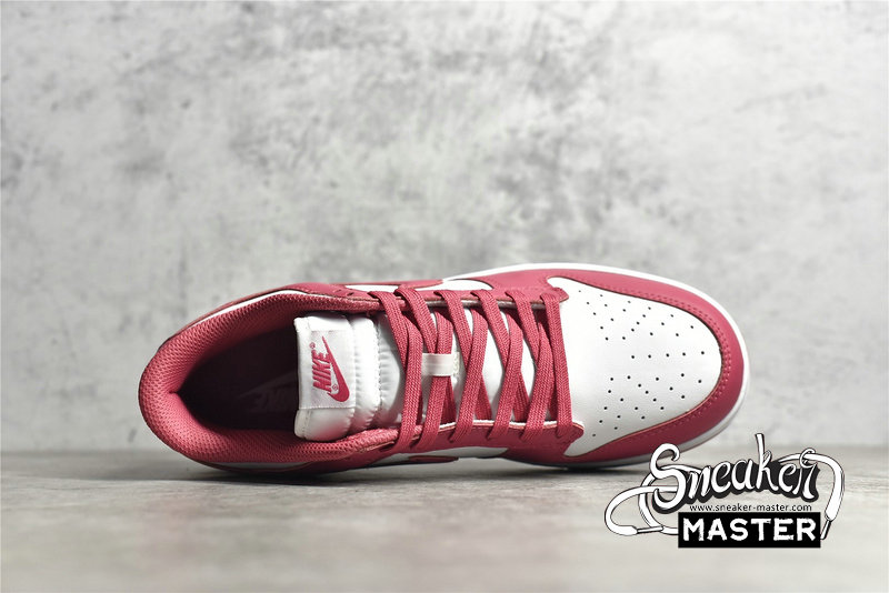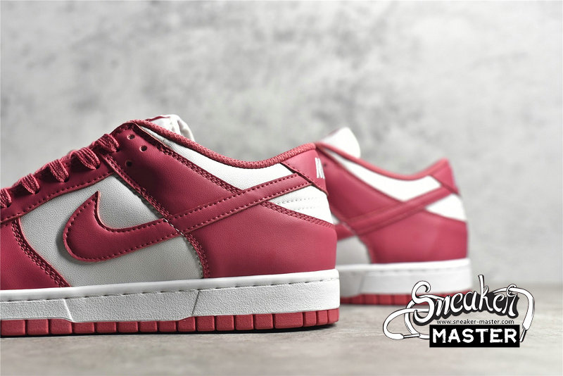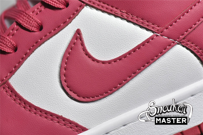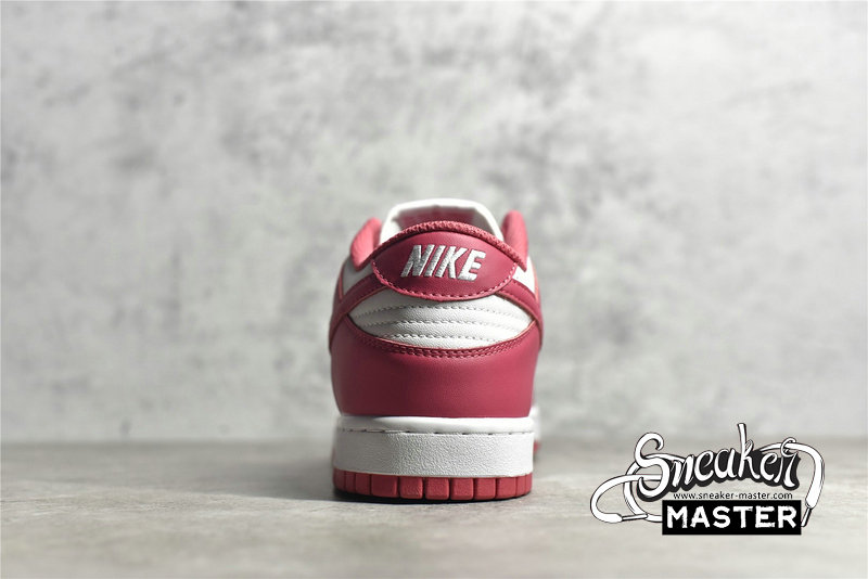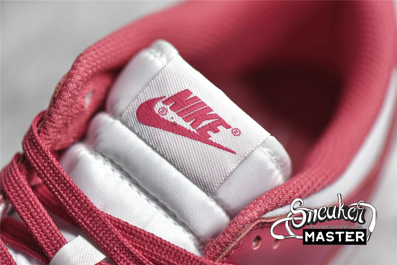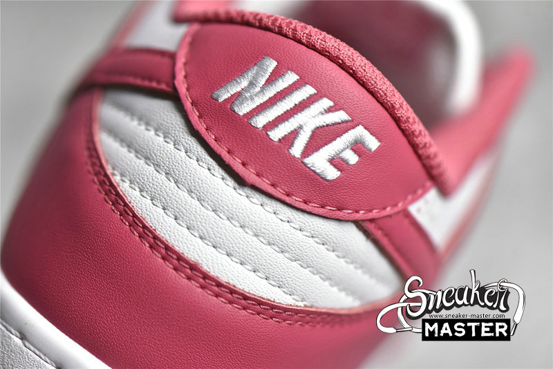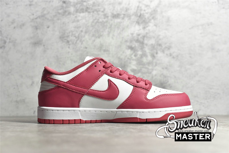 - This offering of the Nike Dunk Low sports a classic two-tone White and Archeo Pink color blocking. It features a White leather base with Pink overlays, Swooshes, laces, tongue branding, liner, and rubber soles. White continues on the tongues, midsole and heel/insole branding to complete the design.