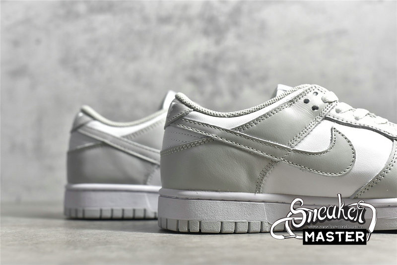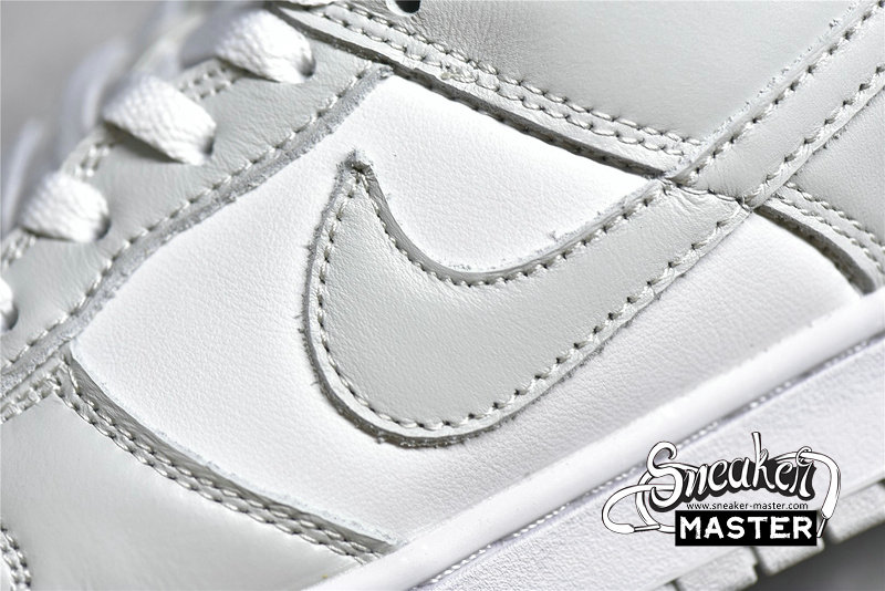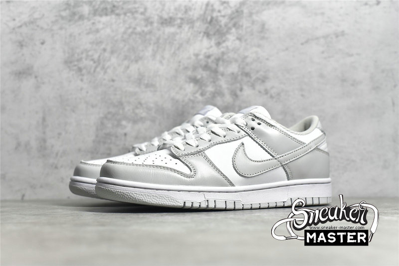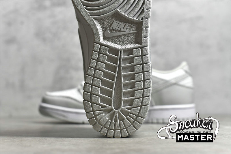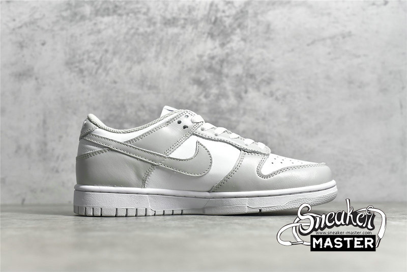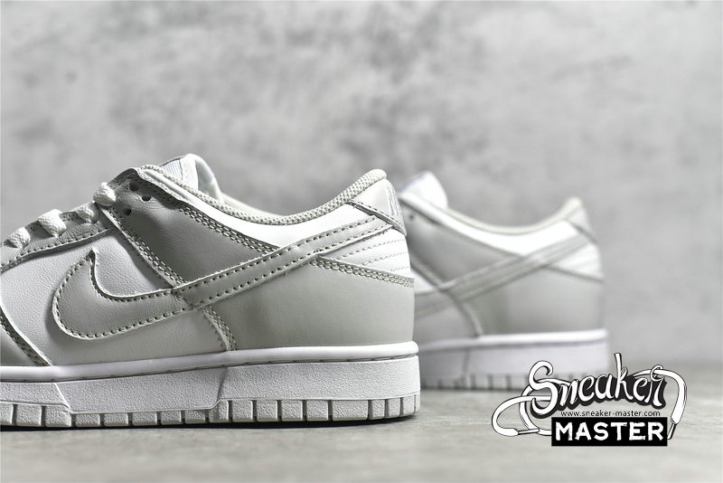 - This offering of the Nike Dunk Low features a White leather base with Photon Dust overlays, Swoosh logos and rubber outsole atop a White midsole.