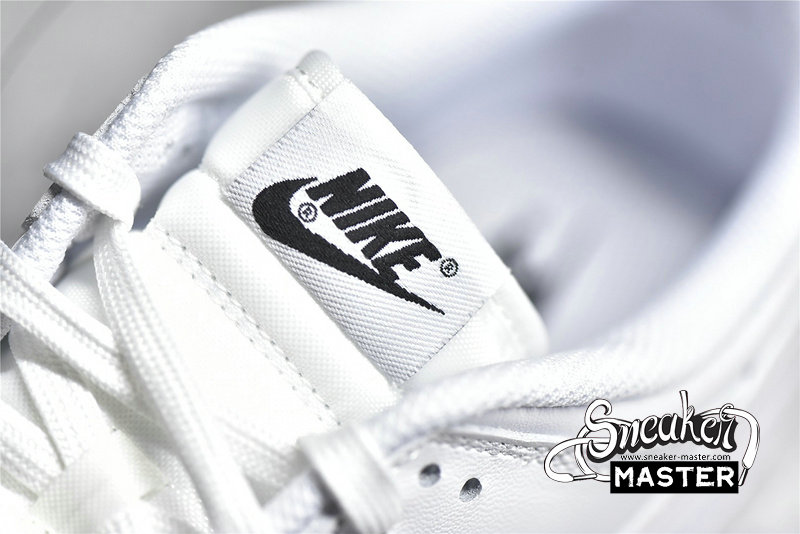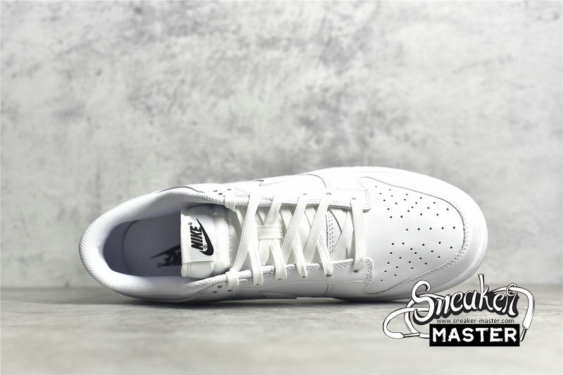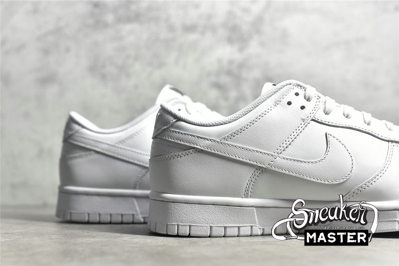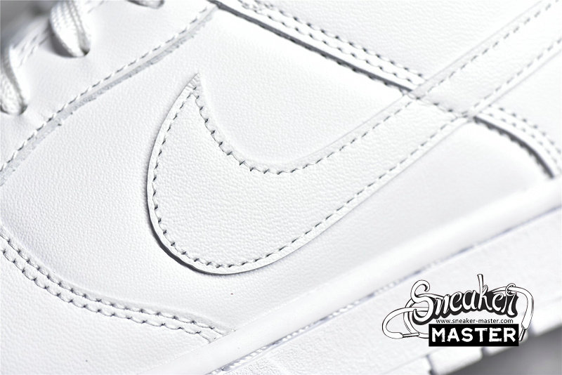 - This offering of the Nike Dunk Low features a an all-White leather build with matching nylon tongues, laces, liner, and rear embroidery. Black branded and insoles atop a solid White rubber sole completes the design.