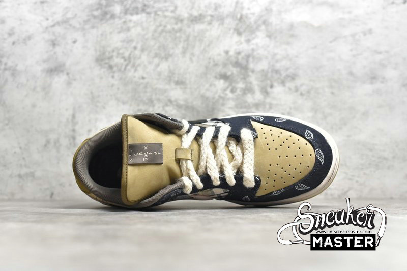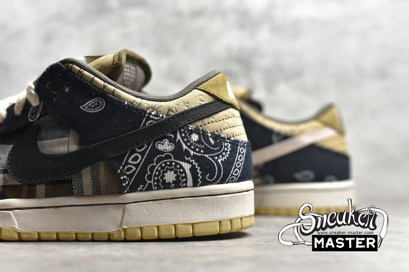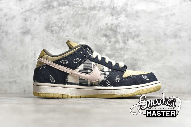 - Travis Scott teamed up with Nike to create the Travis Scott x SB Dunk Low PRM QS 'Cactus Jack.' Featuring a patchwork design, the shoe's upper emerges with a tan suede base accented by plaid on the quarter panel and paisley on the overlays. The overlays themselves are designed to wear away and reveal an elephant print, while the lateral side Swoosh sports a pink finish. Cactus Jack branding emerges on the tongue tag, while a rubber outsole is included for traction.