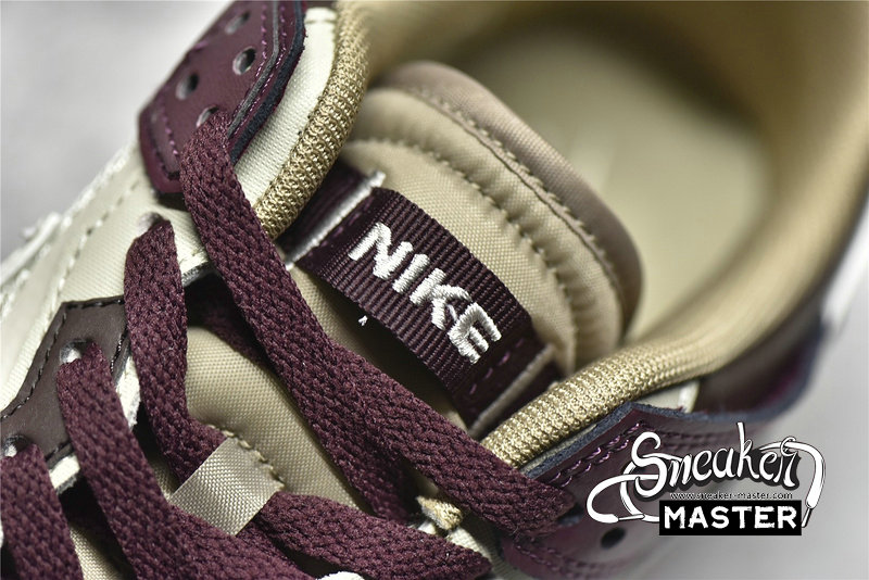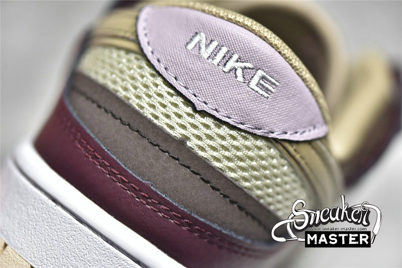 - This Nike Dunk Low comes constructed in a mix of mesh, leather and suede materials detailed with patchwork overlays and exposed stitching. A White midsole atop a Beige rubber outsole completes the design.