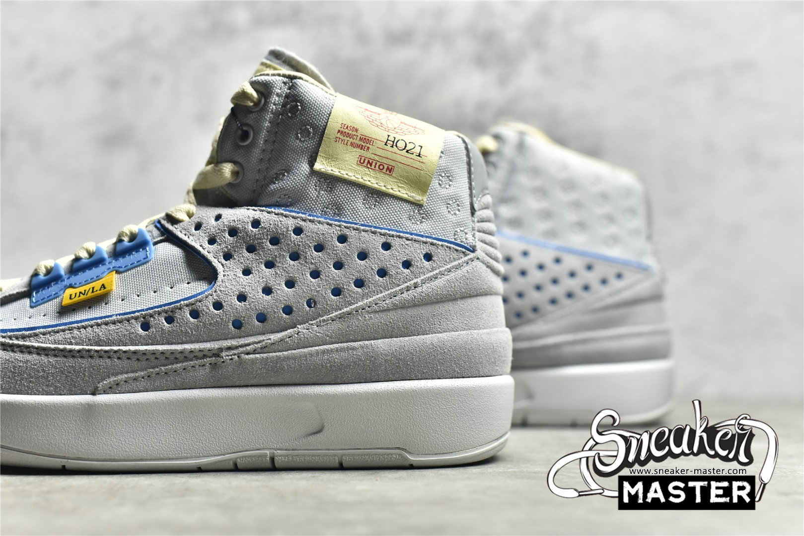 - Delivering a modern take on the legacy silhouette originally released in 1986 is the Union LA x Air Jordan 2 Retro SP 'Grey Fog.' Chris Gibbs and the Union crew give the sneaker a pale blue textile upper with tonal suede construction on the mudguard and quarter panel with perforated detailing that reveals a bright blue underlay that reappears on the sneaker's molded eyelets. A yellow 'UN/LA' tag is on the lateral side and a woven tag looped over the collar displays a retro Wings logo, while an oversized Jumpman label is on the exposed foam tongue. On the bottom is a blue-tinged polyurethane midsole with encapsulated Air-sole cushioning.