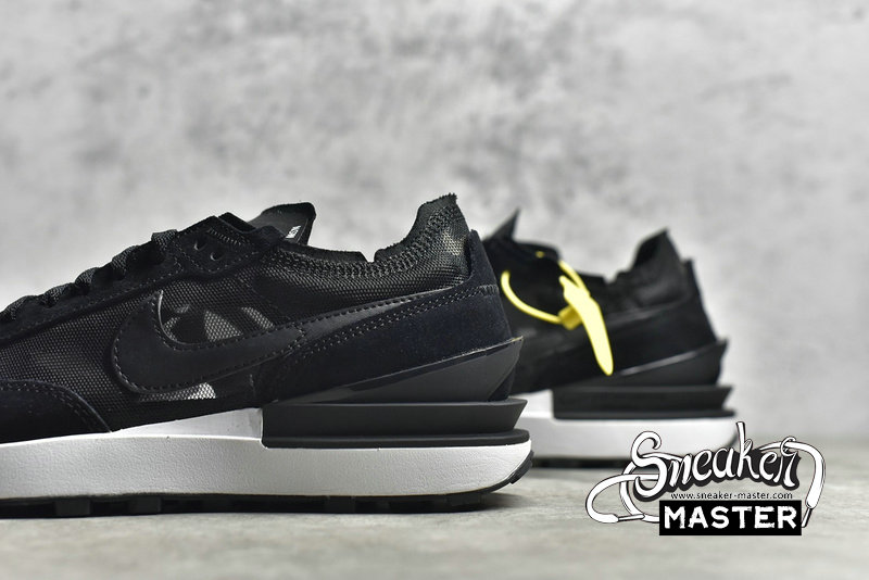 - Emerging in a classic colorway, the Wmns Waffle One 'Black White' is a lifestyle runner. The shoe's upper is built with transparent mesh, overlaid by suede at the toe and heel, all finished in black. White leather contrasts the Swoosh branding on the side wall, matched by the molded-tongue branding. A tonal TPU heel counter offers stability, leading into the stacked foam midsole underfoot, which incorporates a wedge shape for cushioning. A waffle rubber outsole is included for traction.