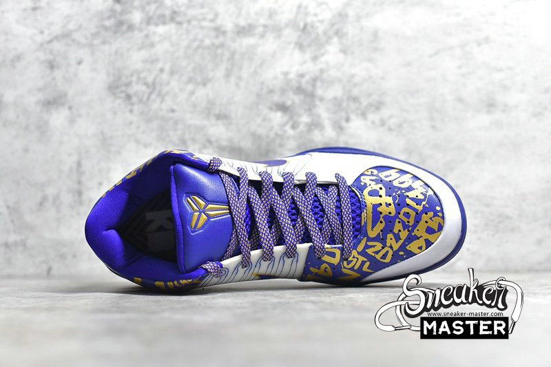 - The Zoom Kobe 4 POP 'Finals MVP' gives the nod to Kobe Bryant's fourth NBA title and first Finals MVP. Modeled after the Los Angeles Lakers' home jerseys, the white and Concord build is accented by metallic gold on the Swoosh. More metallic gold emerges on the collar and toe box, which sport scribble graphics detailing notable moments from the season.
