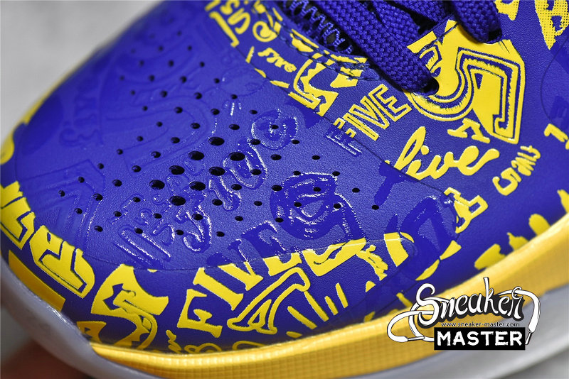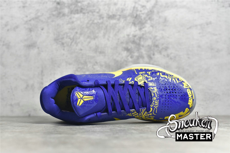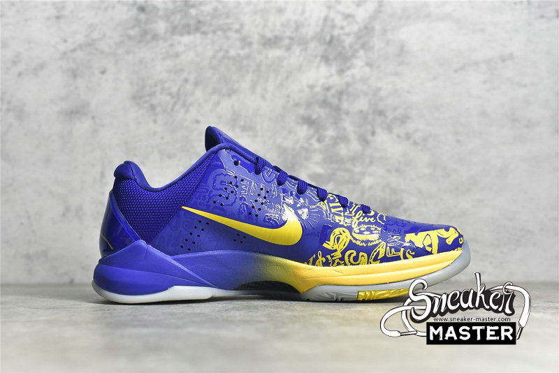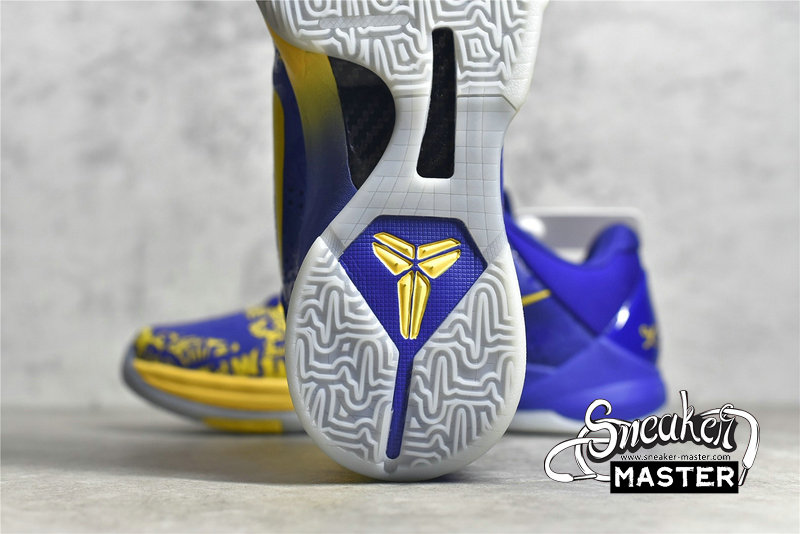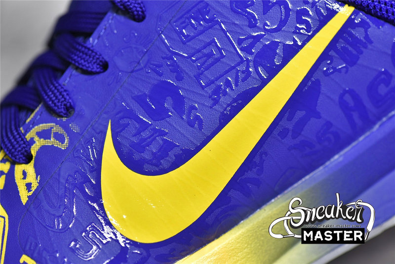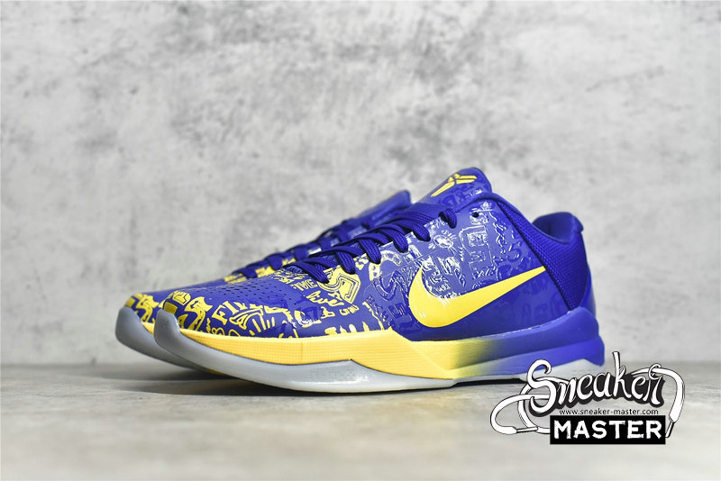 - This offering of the Nike Kobe 5 Protro features a Purple-to-Yellow upper detailed with laser-etched verbiage spelling out “Five Rings.” Yellow Kobe tongues and Swooshes on the sides atop a gradient midsole and translucent outsole completes the design.