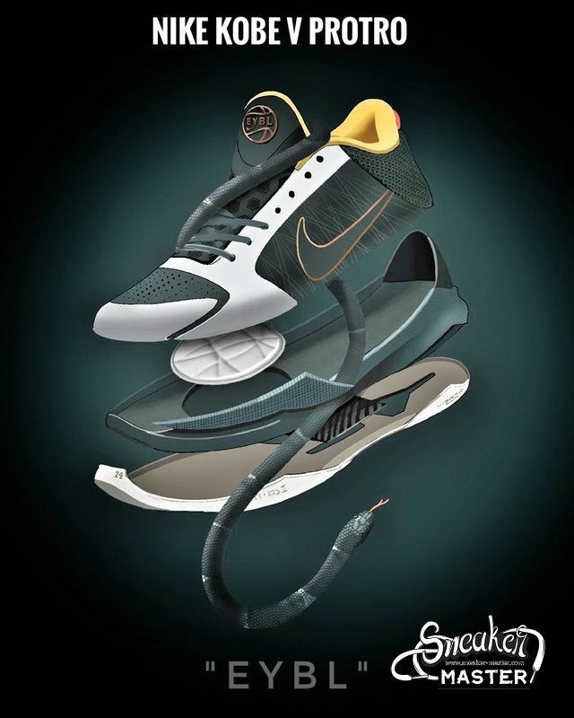 - Part of a collection that released for Mamba Week, the Zoom Kobe 5 Protro 'EYBL' dropped in August 2020. Inspired by Greek mythology, the shoe's synthetic upper includes a scaly texture modeled after Medusa. The left tongue sports an EYBL logo, with Kobe branding on the right shoe. The collar lining and heel accent the look, while underfoot, Zoom in the midsole provides cushioning.